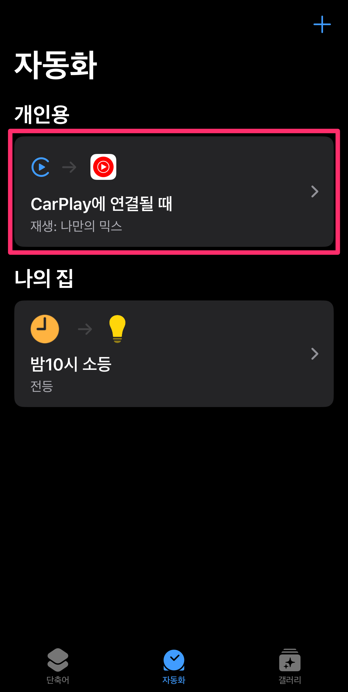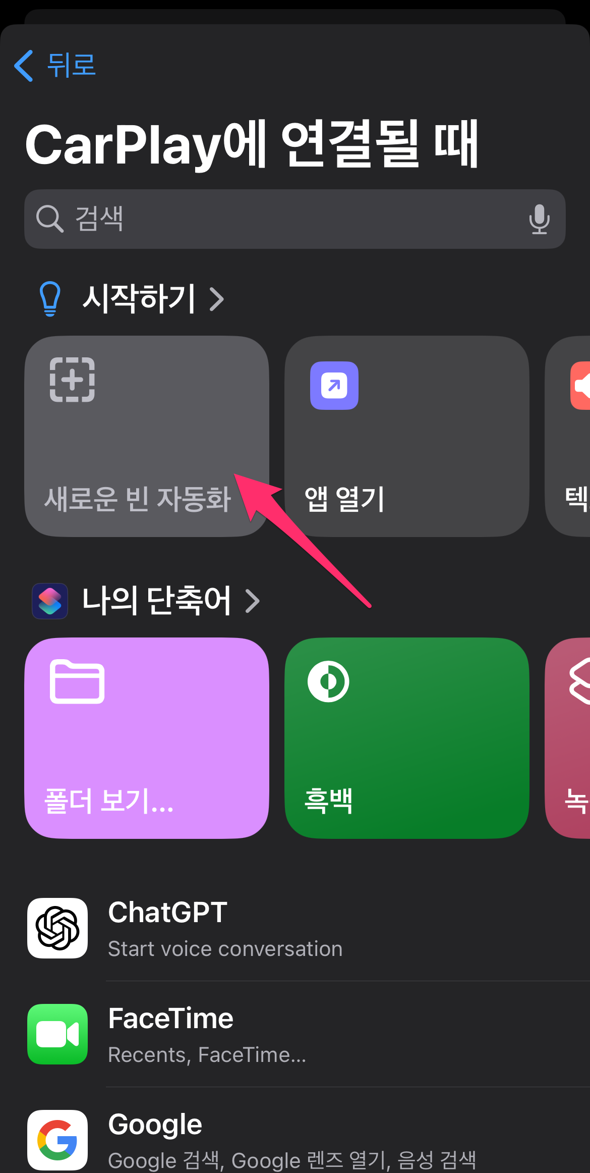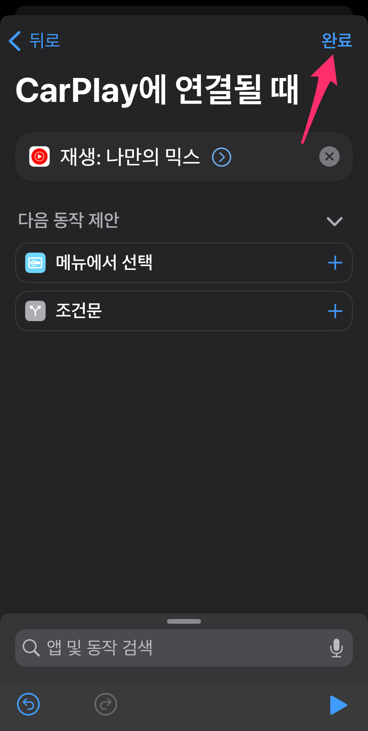 그래서 아이폰 단축어앱을 이용해서 카플레이가 연결되면 자동으로 유튜브 뮤직이 재생되도록 해보겠습니다.