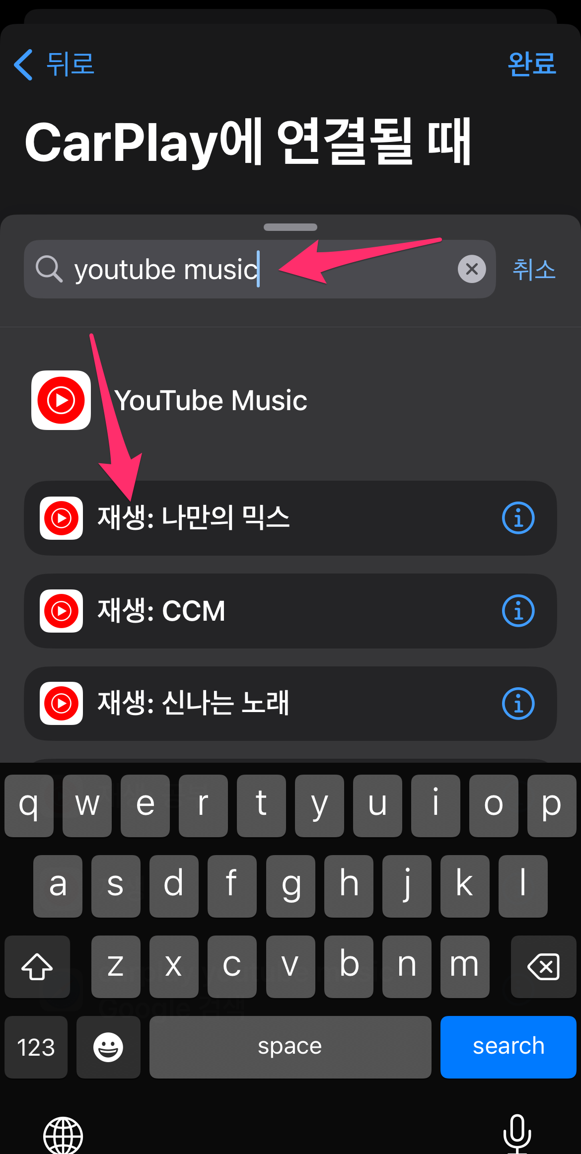 이제 CarPlay에 연결될 때에 유튜브 뮤직이 자동으로 실행되면서 나만의 믹스가 재생됩니다.