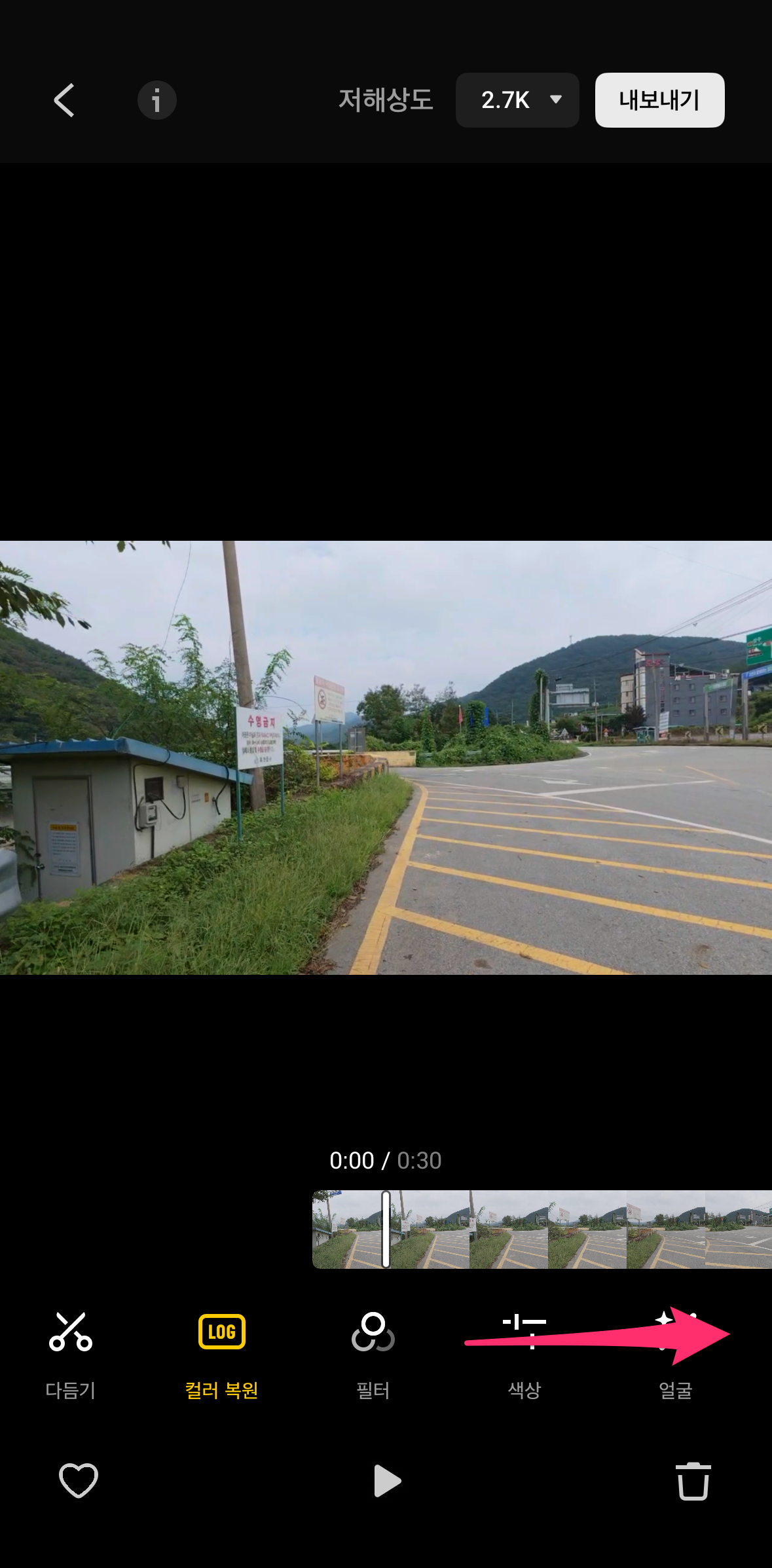 그리고 원하는 영상을 선택하면 여러 가지 옵션이 있는데요. 우선 메뉴를 왼쪽으로 이동시킵니다.
