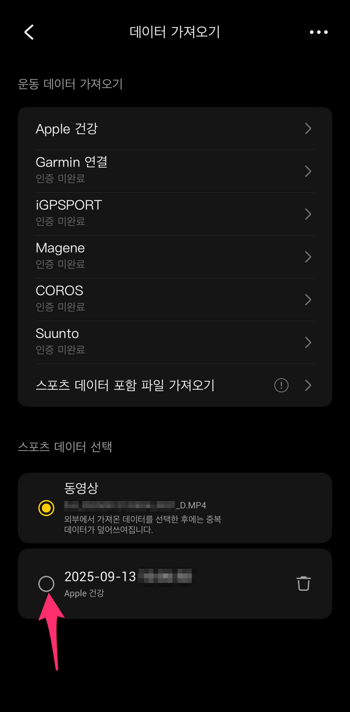 - 애플워치(촬영 시작할 때 같이 꼭 운동(트래킹, 달리기, 자전거 등) 실행)
