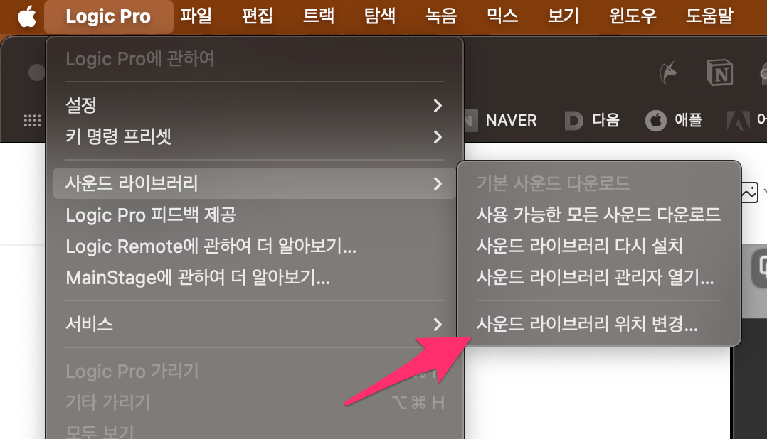사운드 라이브러리 위치 변경을 선택합니다.