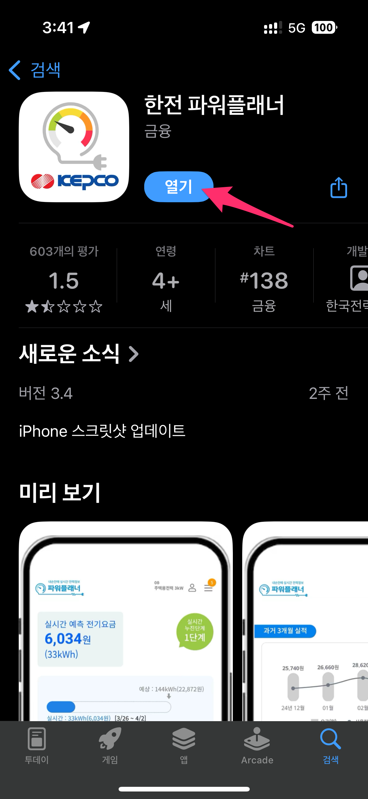 - 안드로이드 : 구글 플레이스토어에서 '한전 파워플래너' 검색 후 설치