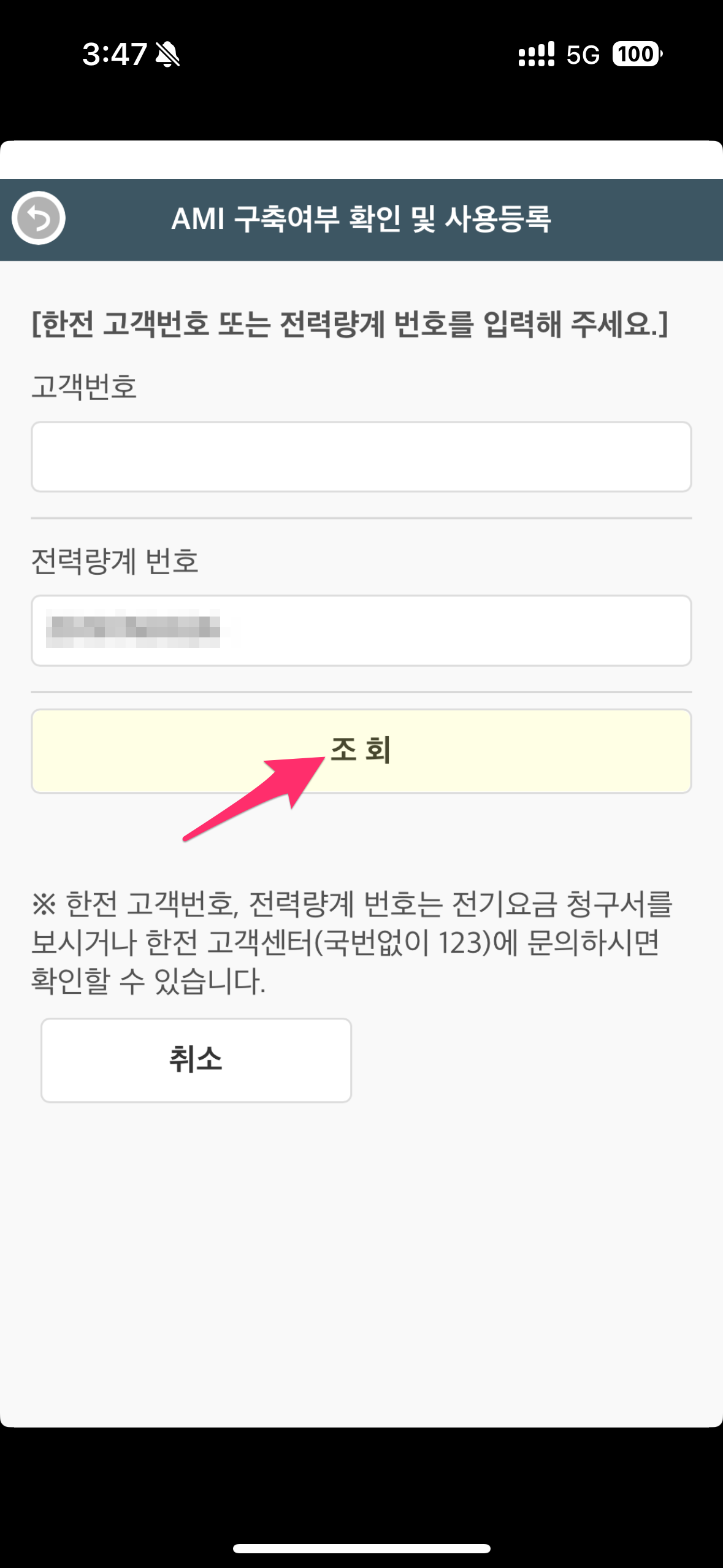 혹시 AMI(스마트계량기)가 없으면 한전ON 앱을 설치해서 확인하시면 됩니다.