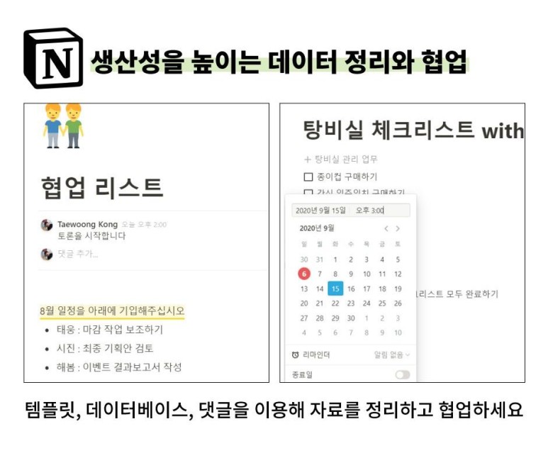 업무 일지나 프로젝트 관리 같은 것들도 회사 직원들이 동시 접속하여 작업도 가능하고 알림이나 메션 같은 기능도 가능하니 그냥 평범한 메모장 프로그램은 아닌거 같아요^^;