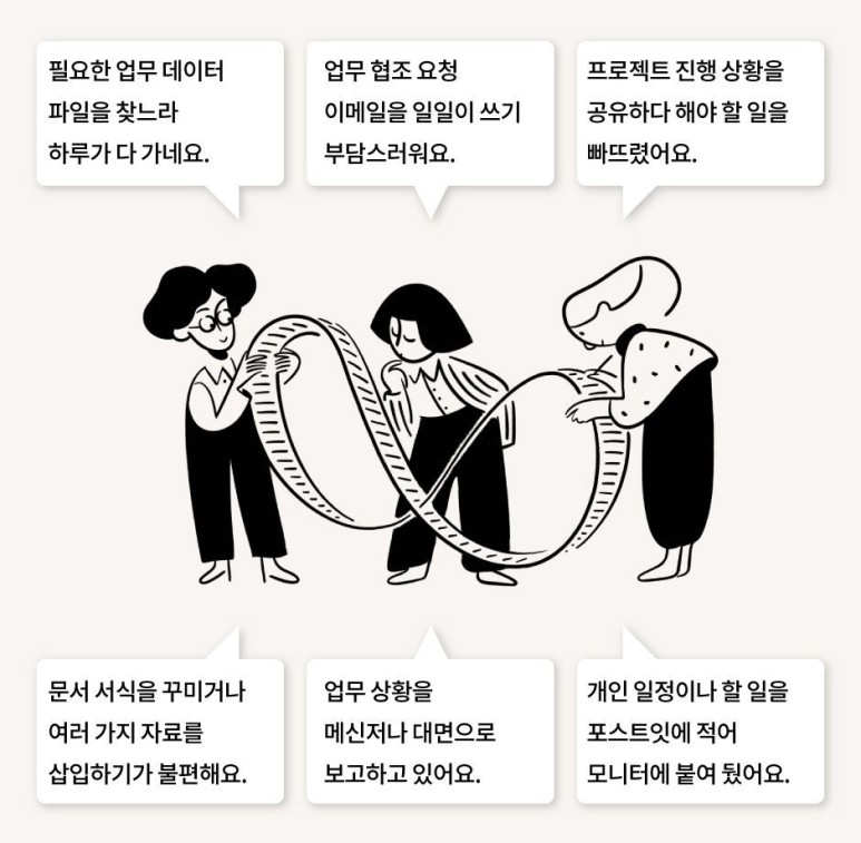 업무 일지나 프로젝트 관리 같은 것들도 회사 직원들이 동시 접속하여 작업도 가능하고 알림이나 메션 같은 기능도 가능하니 그냥 평범한 메모장 프로그램은 아닌거 같아요^^;