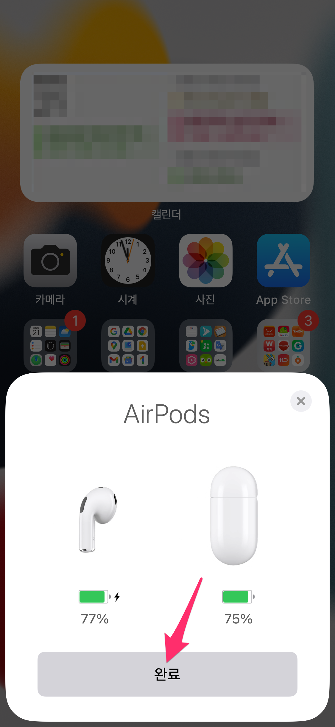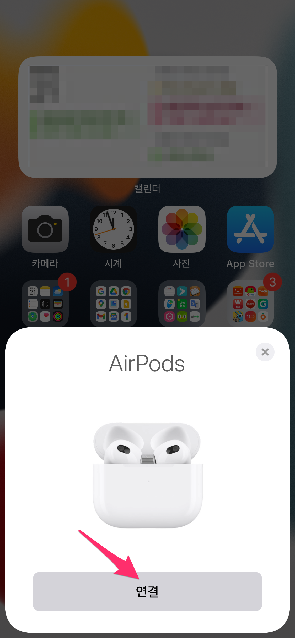 에어팟을 인식하면 연결 화면이 나오고 연결을 선택하면 아이폰과 자동으로 연결됩니다.