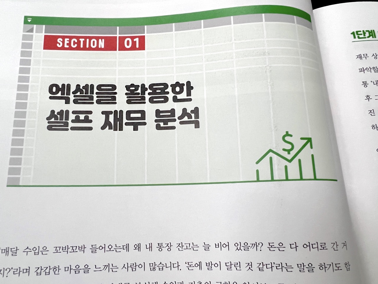 섹션 마무리 부분에는 엑셀로 부자되기를 통해서 셀프 재무 점검부터 상태 진단 등의 체크리스트를 제공합니다.