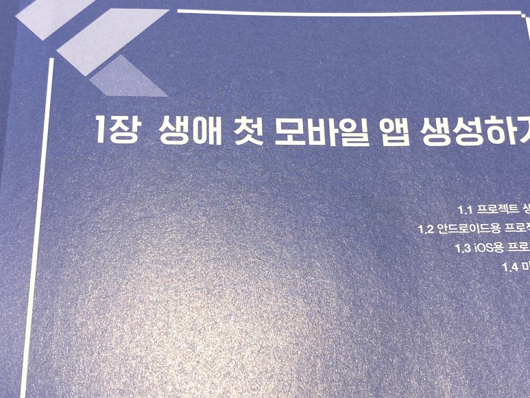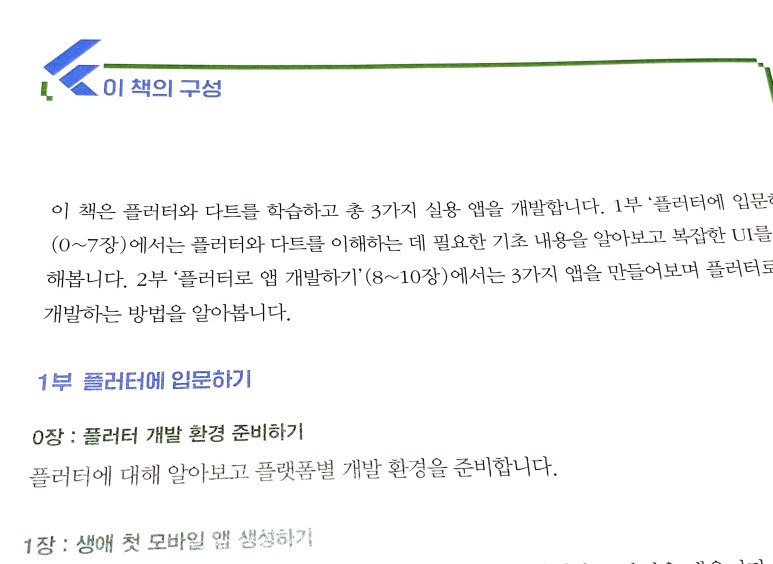 목차를 보시면 개발 환경 준비부터 시작해서 타트언어, 위젯, 프로젝트 어플 개발까지 다양합니다.