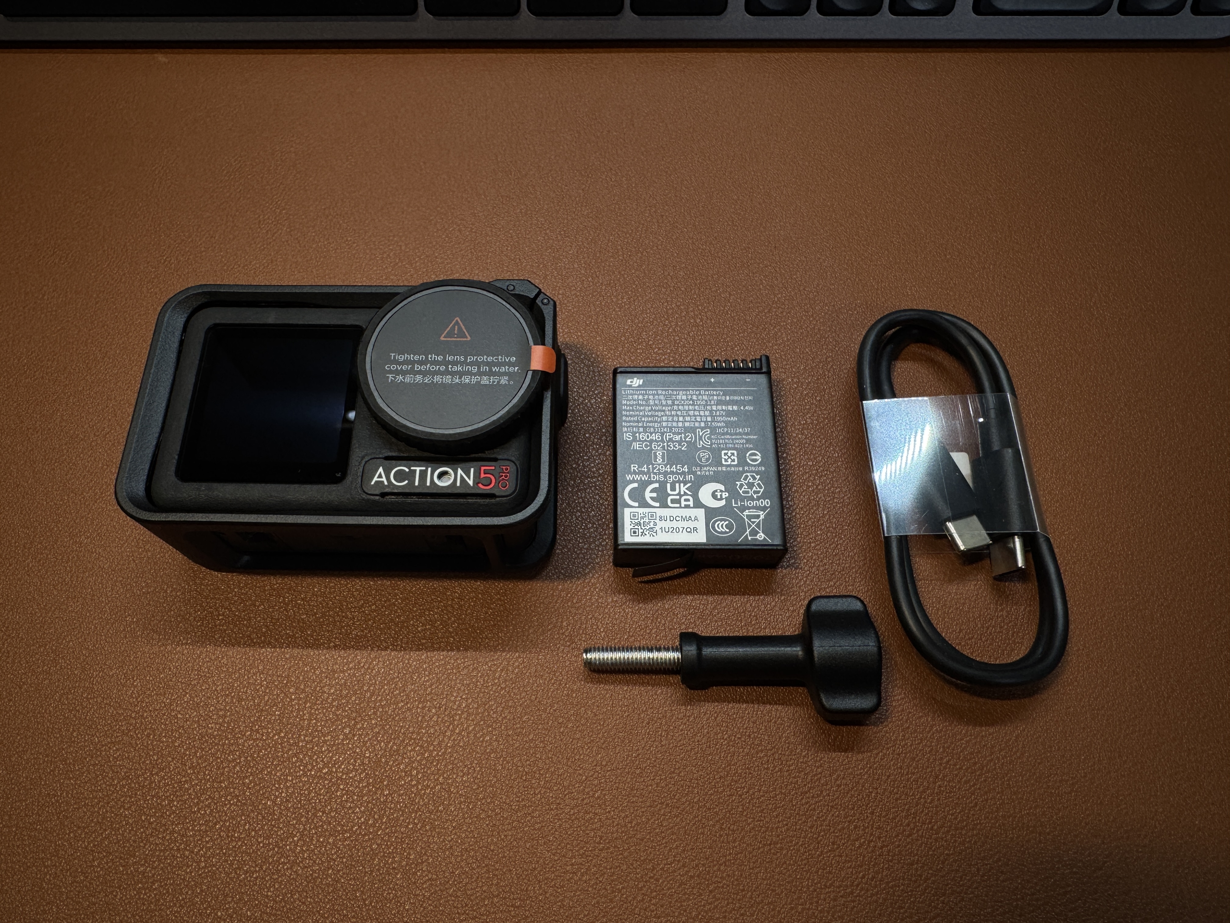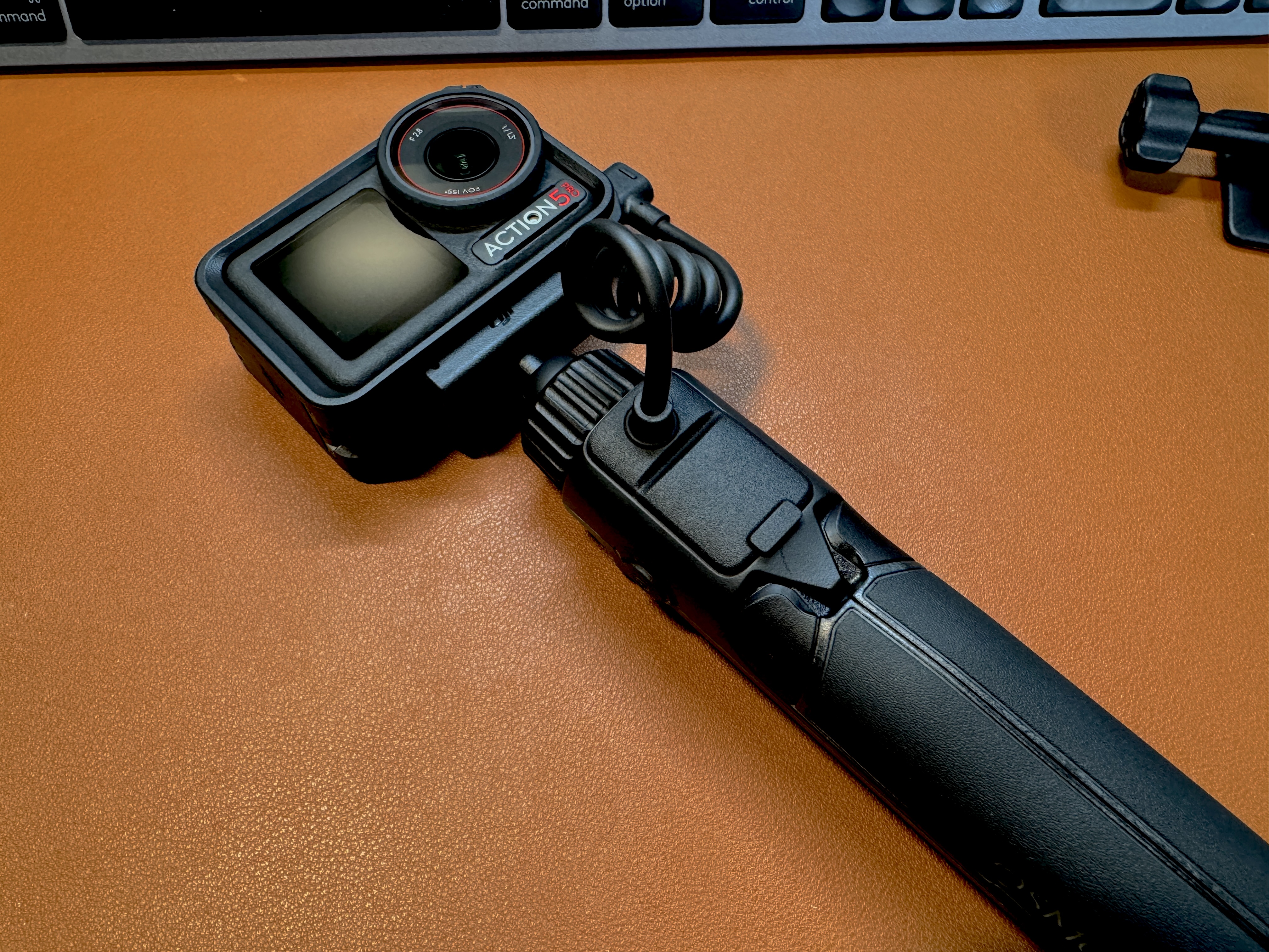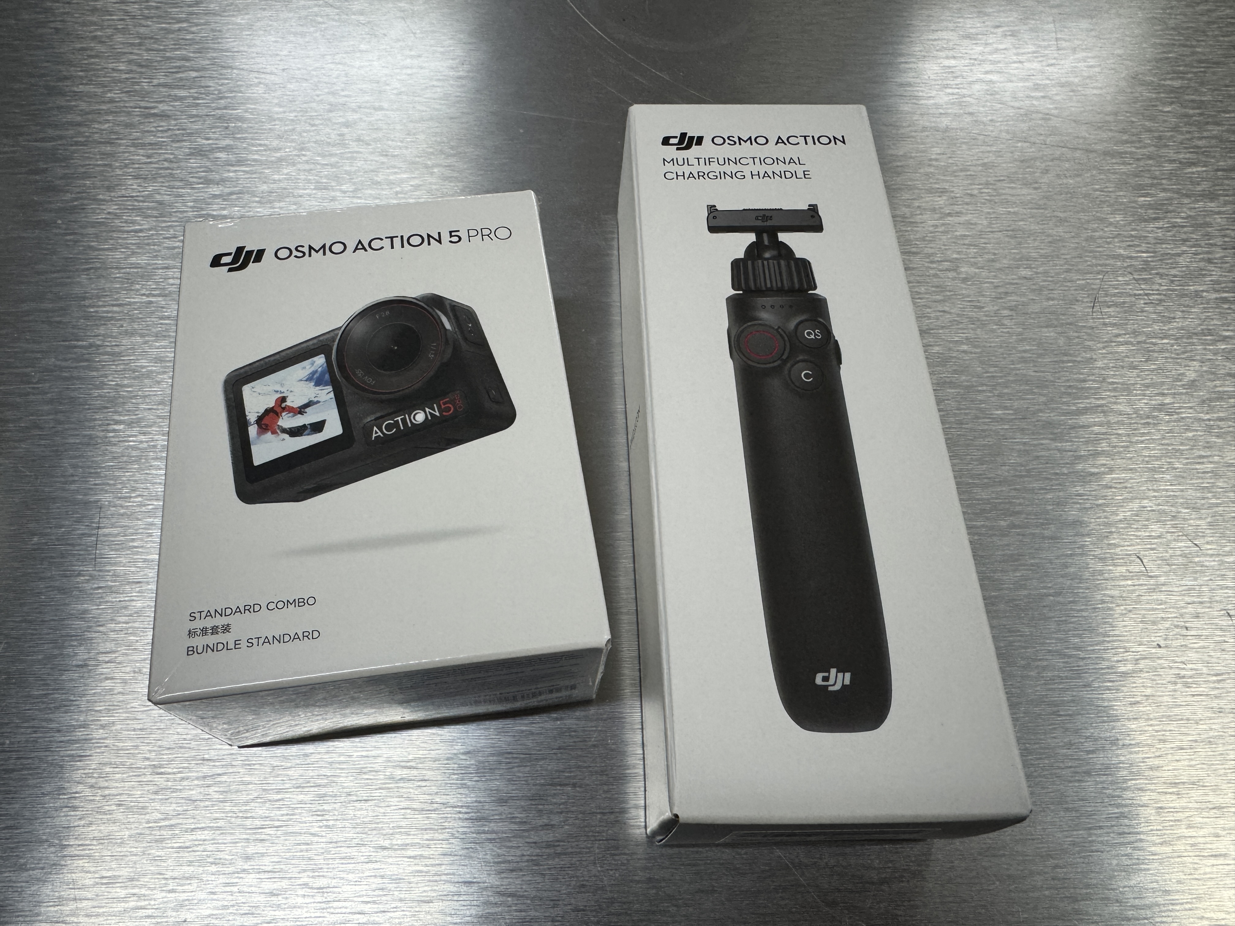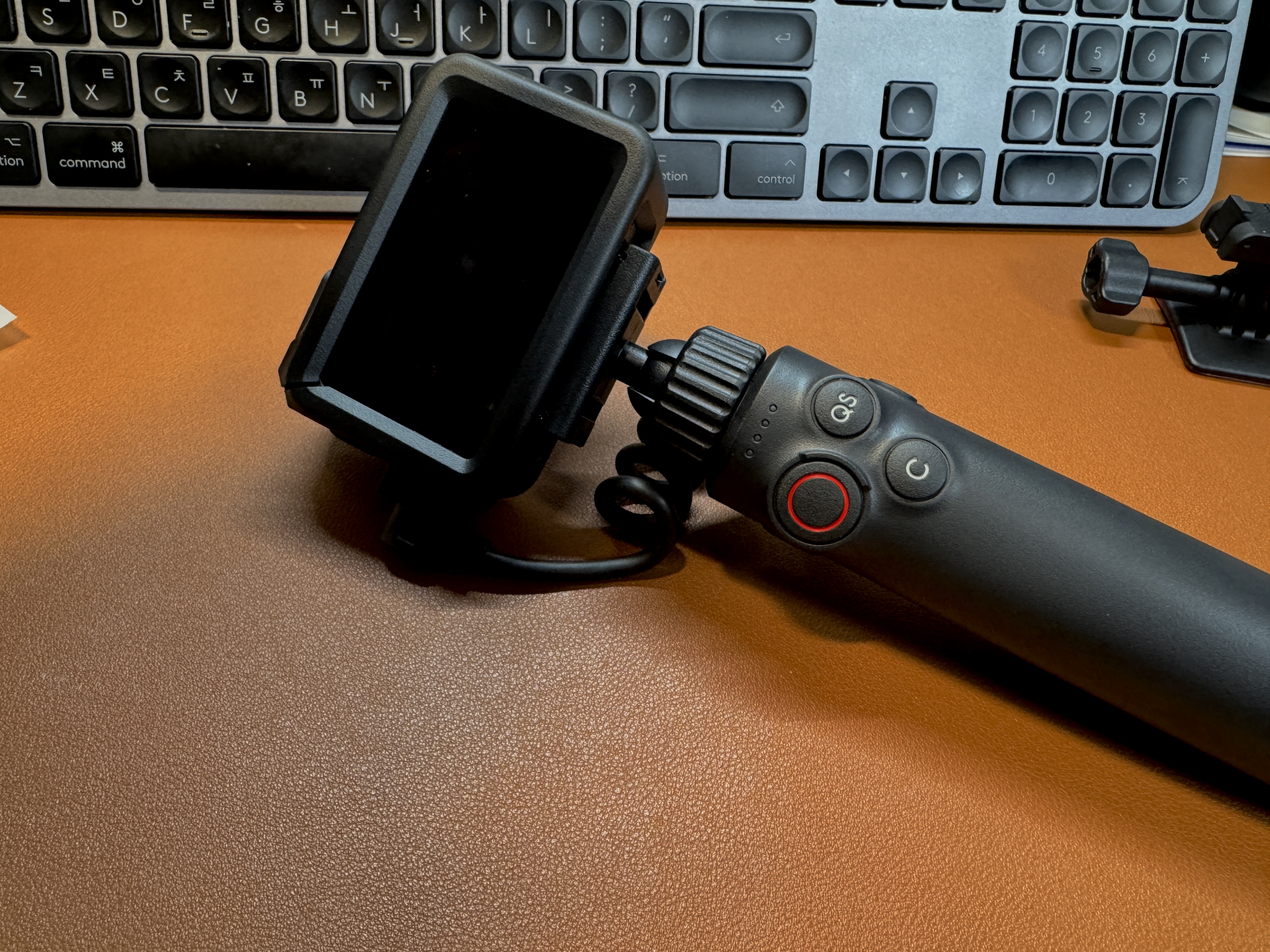 내장 4900mAh 배터리가 내장된 오즈모 액션 다기능 충전 핸들과 장착했습니다.