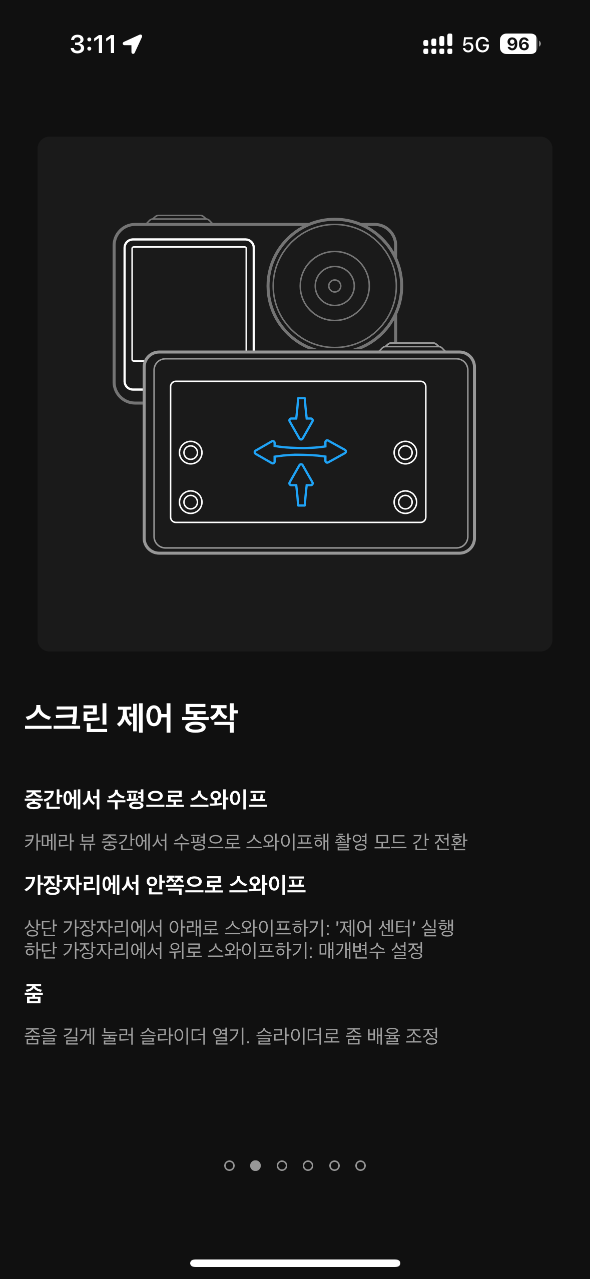 • 줌을 길게 눌러 슬라이더 열기 : 슬라이더로 줌 배율 조정