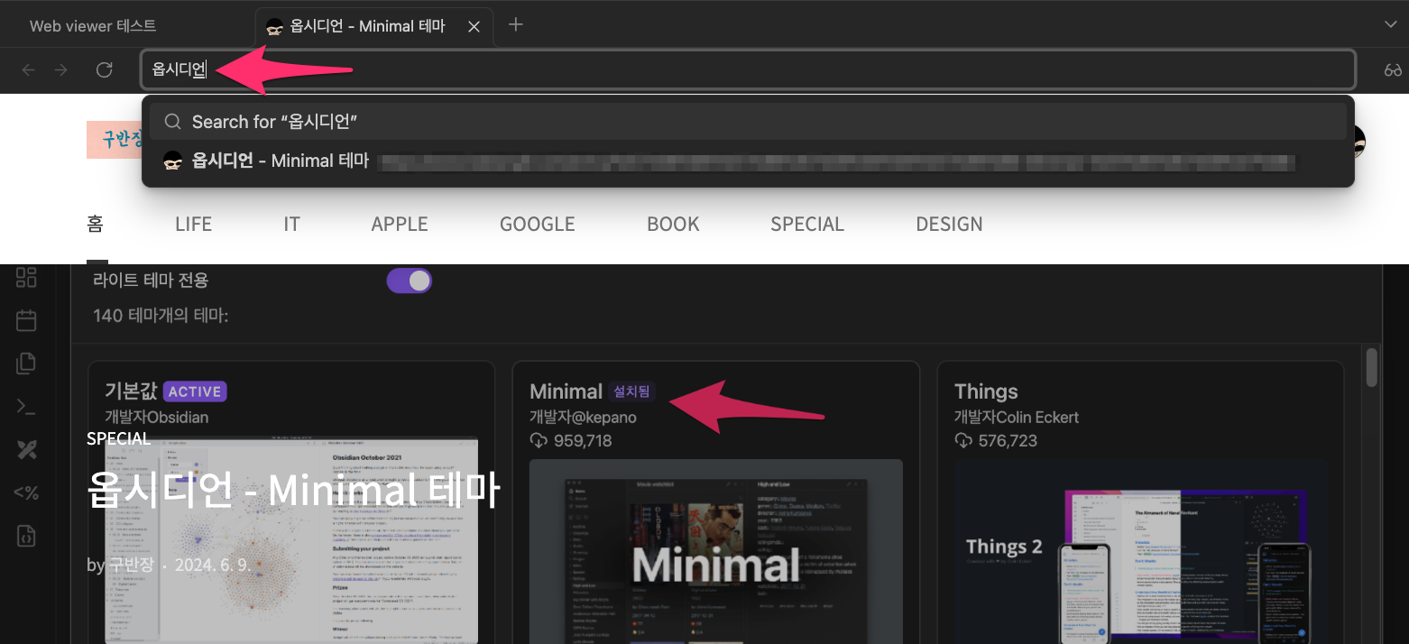 상단 주소창에 옵시디언을 검색해 봅니다.