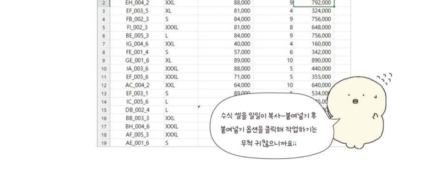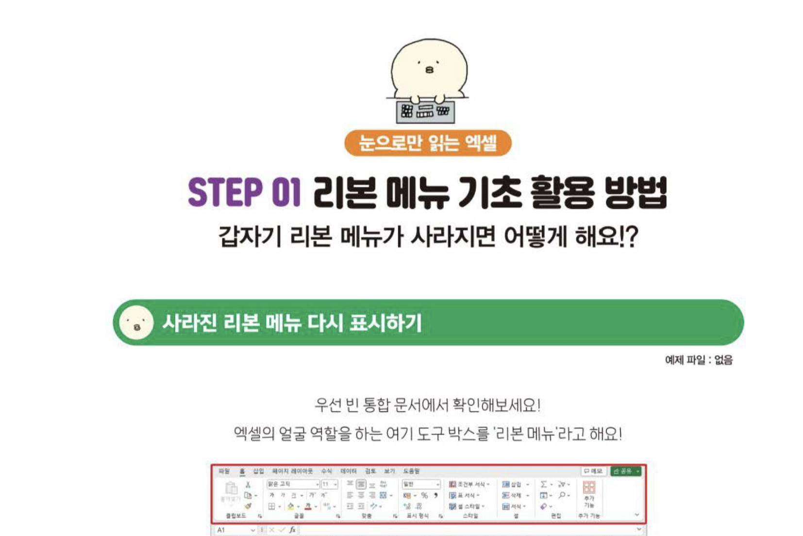 귀여운(?) 캐릭터가 등장해 엑셀 사용법을 차근차근 설명해 주고, 실수하기 쉬운 부분이나 중요한 팁도 강조해 줍니다.