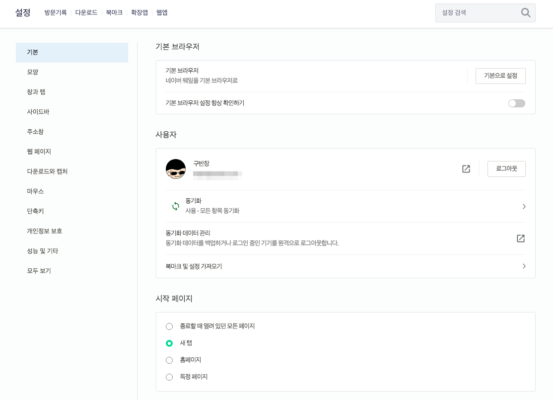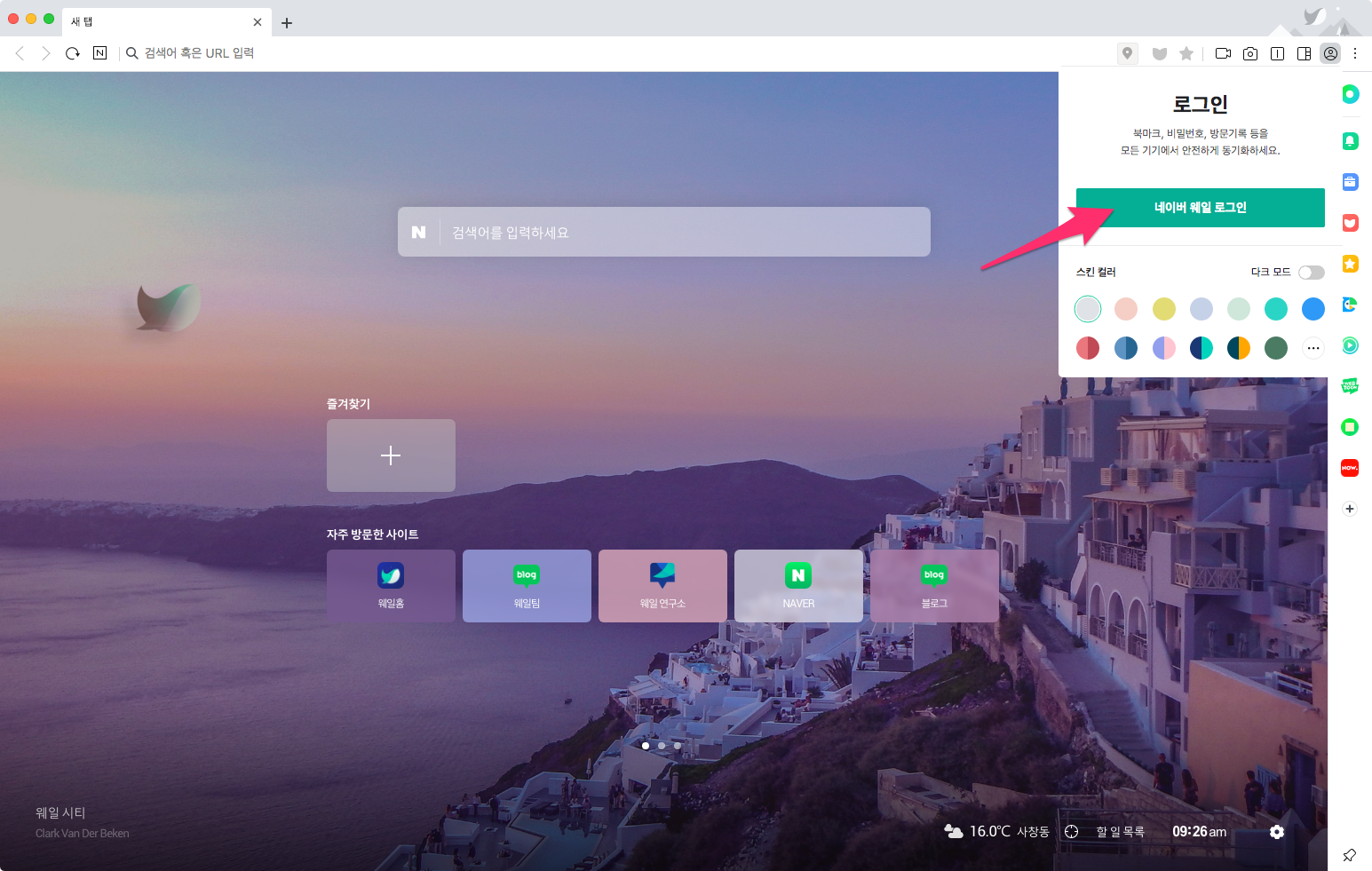 네이버 웨일 로그인 버튼을 선택해서 네이버 계정으로 로그인합니다.