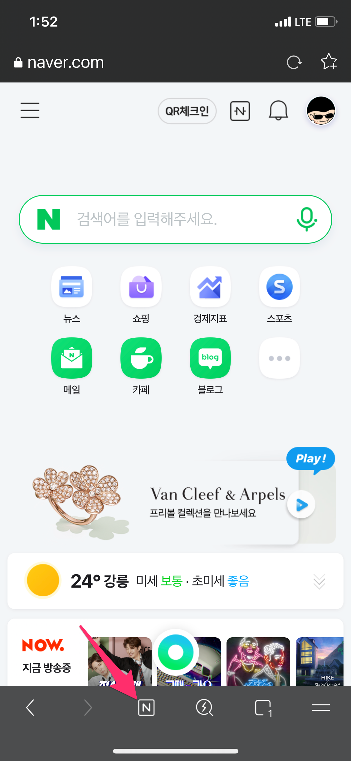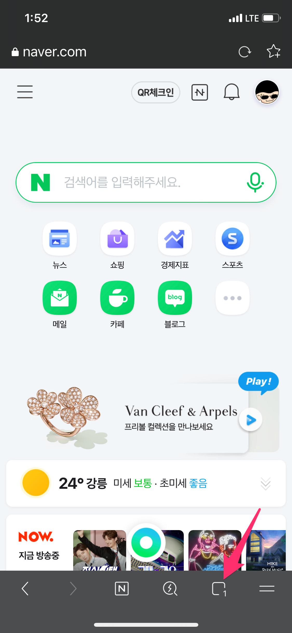 그리고 하단에 N 버튼을 누르면 바로 네이버로 접속합니다.