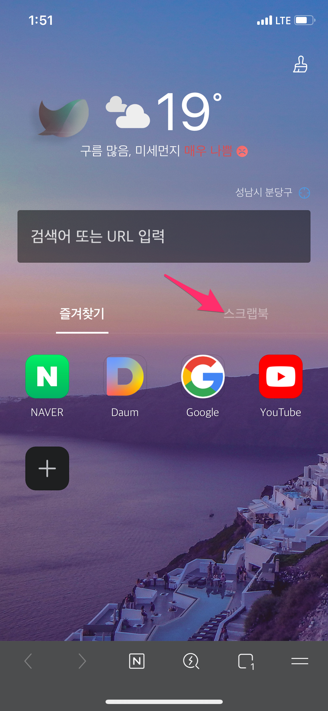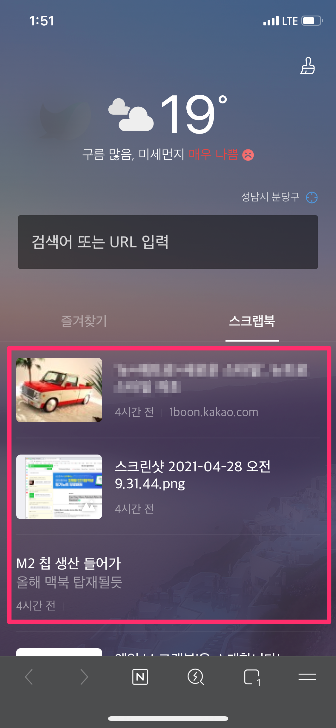 첫 화면에서 스크랩북을 선택하시면 아까 PC에서 저장한 스크랩을 스마트폰에서도 확인 가능합니다.