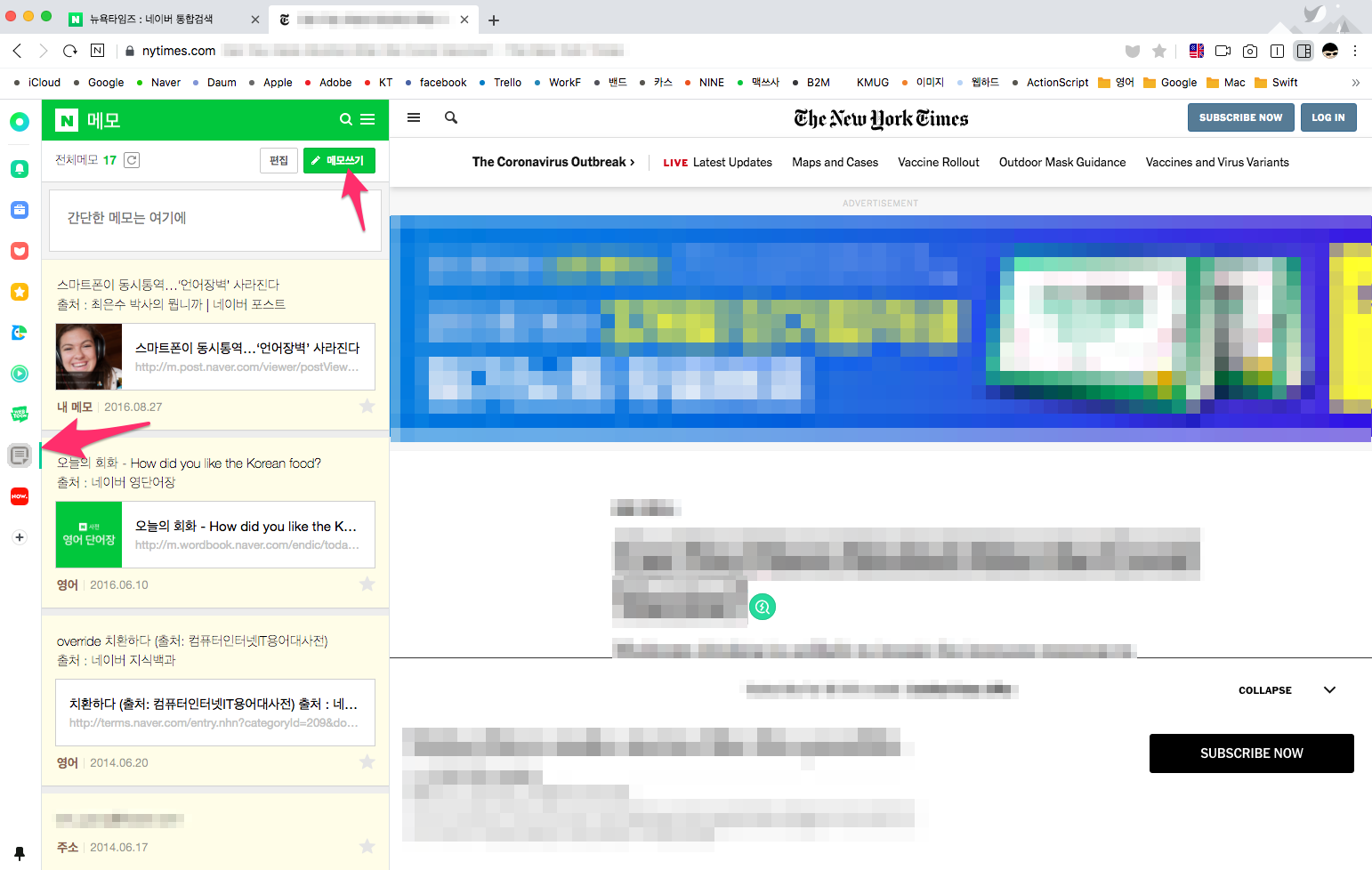 네이버 메모를 선택하여 검색한 내용을 메모합니다.