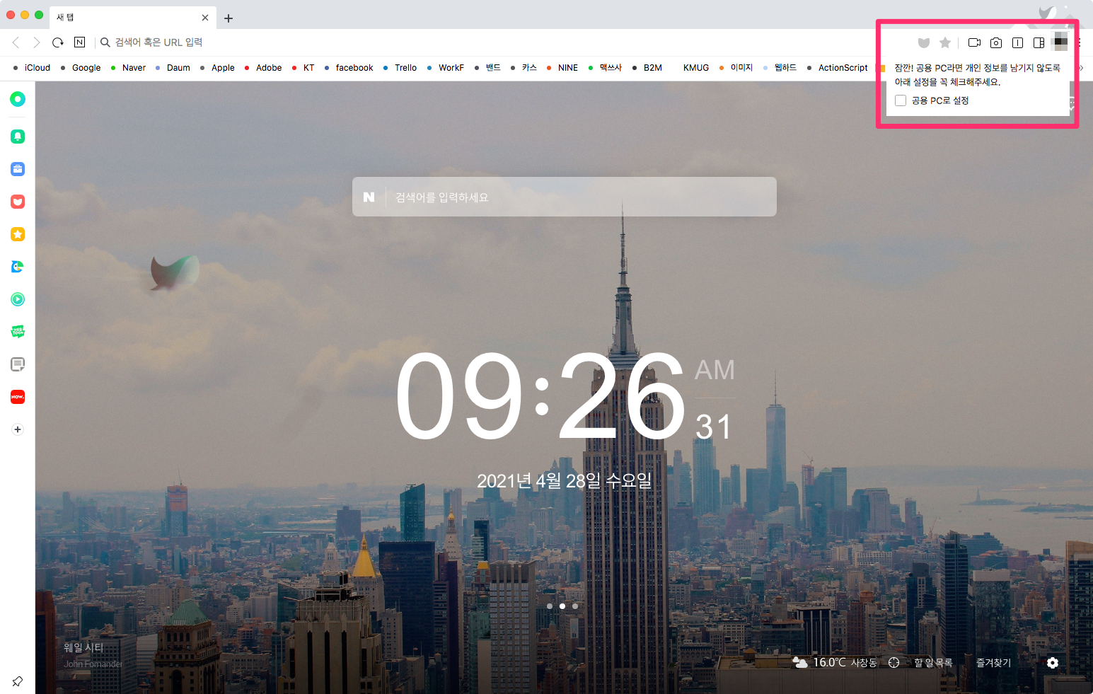 혹시나 로그인은 했지만 사용하시는 PC가 공용 PC라면 개인 정보가 남겨지지 않도록 공용 PC로 설정을 체크합니다.