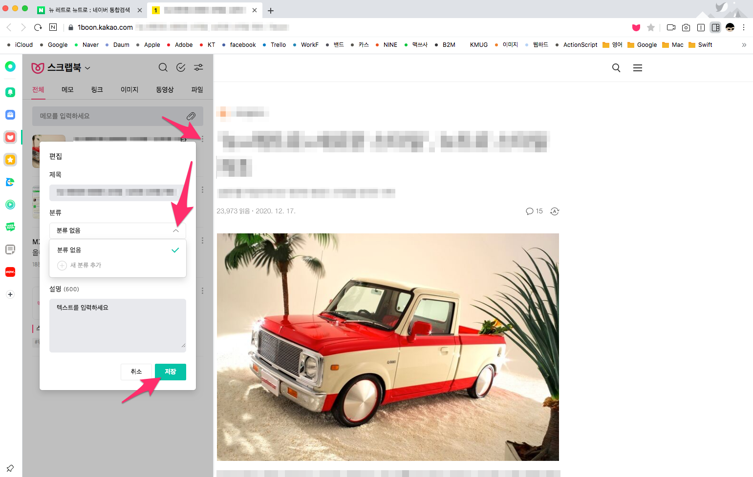 저장한 스크랩 옆에 점 3개를 누른 후에 수정할 수 있습니다.