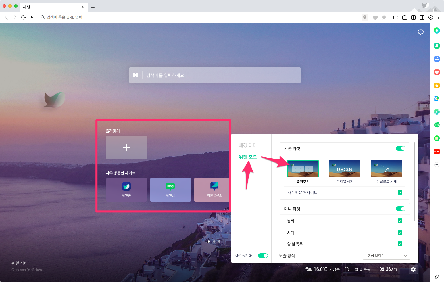 웨일 왼쪽에 있는 사이드바에는 다양한 기능들의 아이콘이 있습니다.