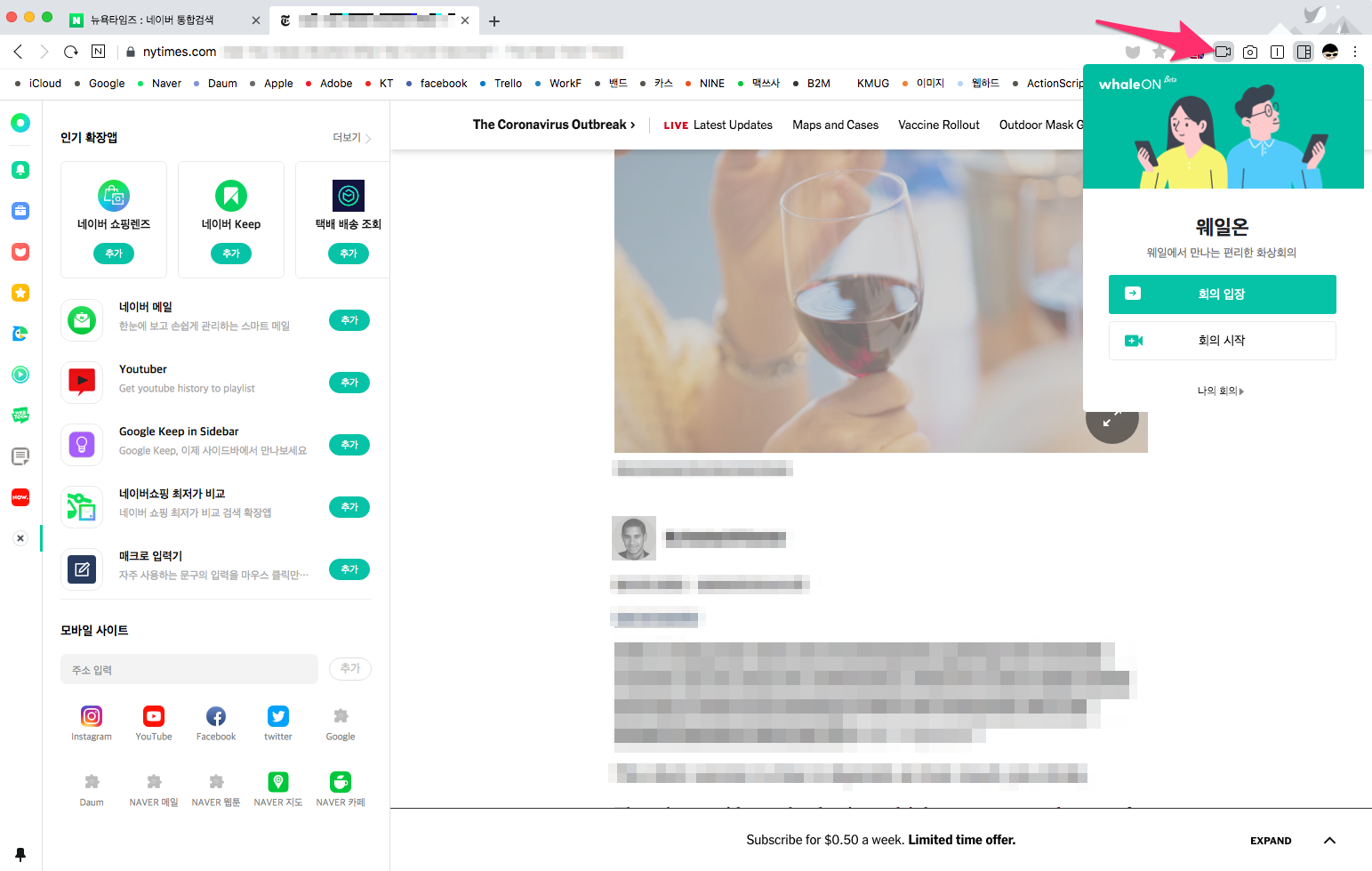 그리고 몇 주를 사용해 본 결과 Windows 환경에서는 크롬보다 웨일이 더 편하게 느껴졌습니다.