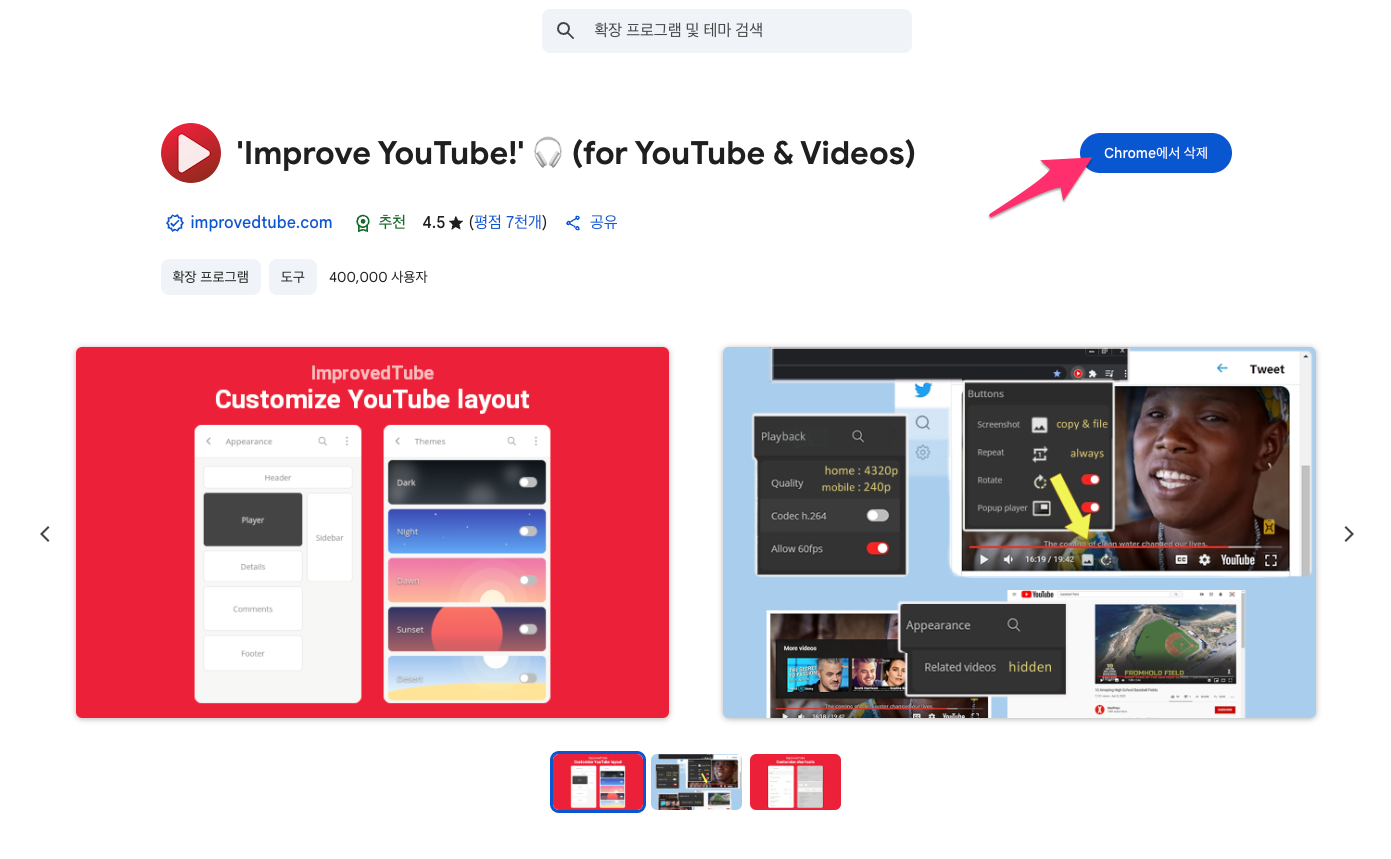 4. 'Improve YouTube!' 🎧 (for YouTube & Videos) 확장 프로그램 선택