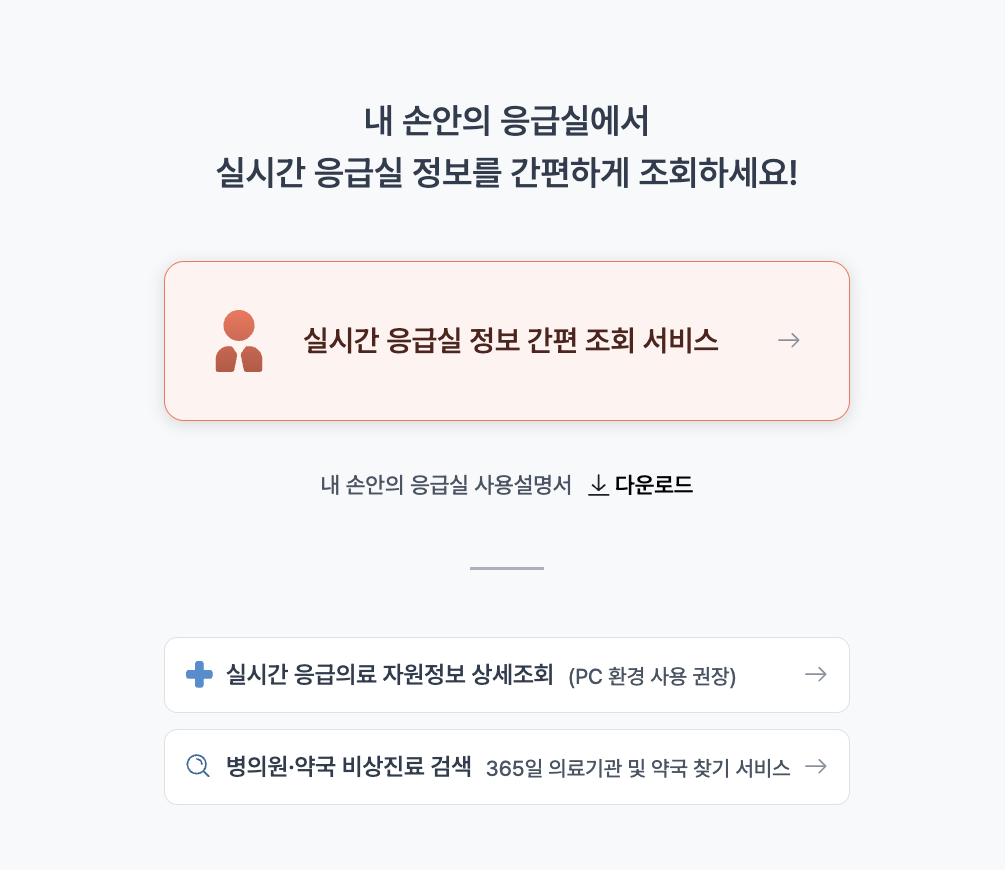 '내 손안의 응급실'은 단순한 정보 제공 앱을 넘어 국민의 생명을 지키기 위한 국가 공식 안전망입니다.
