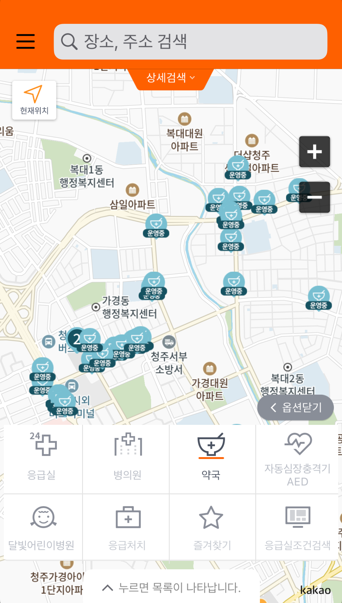 특히 야간이나 주말에 문을 연 곳을 아이콘으로 구분하여 표시해 주므로, 갑작스러운 상황에서 빠르게 대처할 수 있습니다.