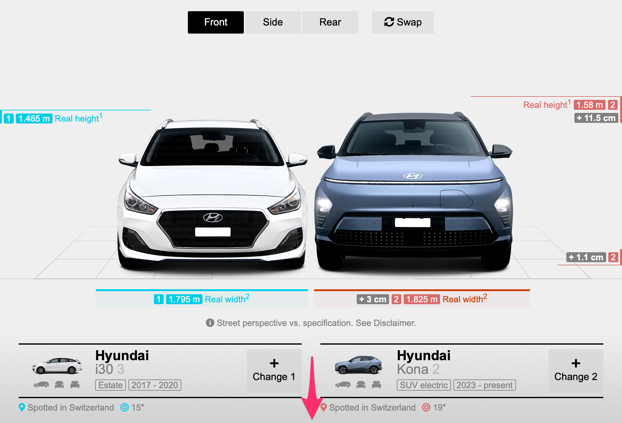이제 자동차 후면을 기준으로 서로의 크기를 확인할 수 있습니다.