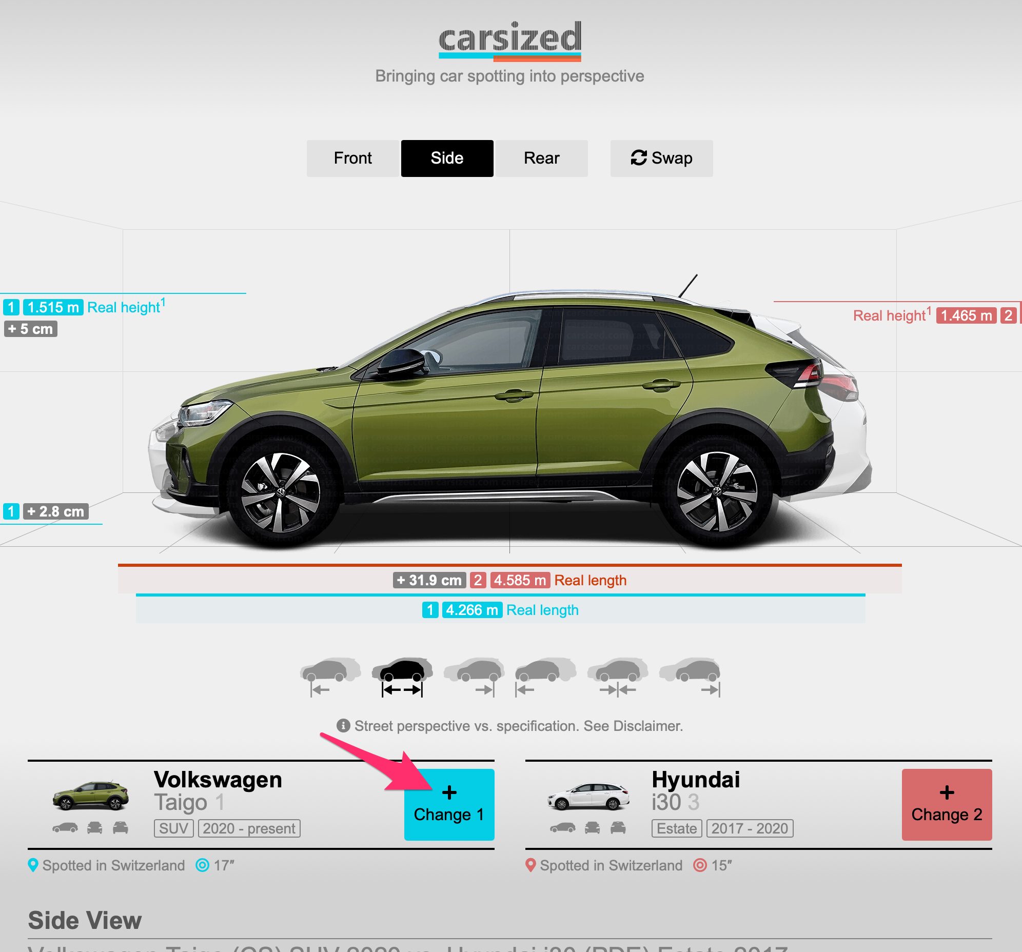 이렇게 해당 홈페이지를 이용해서 구입하려는 자동차의 크기를 비교하시면 구매하시는데 도움이 되지 않을까요^^?