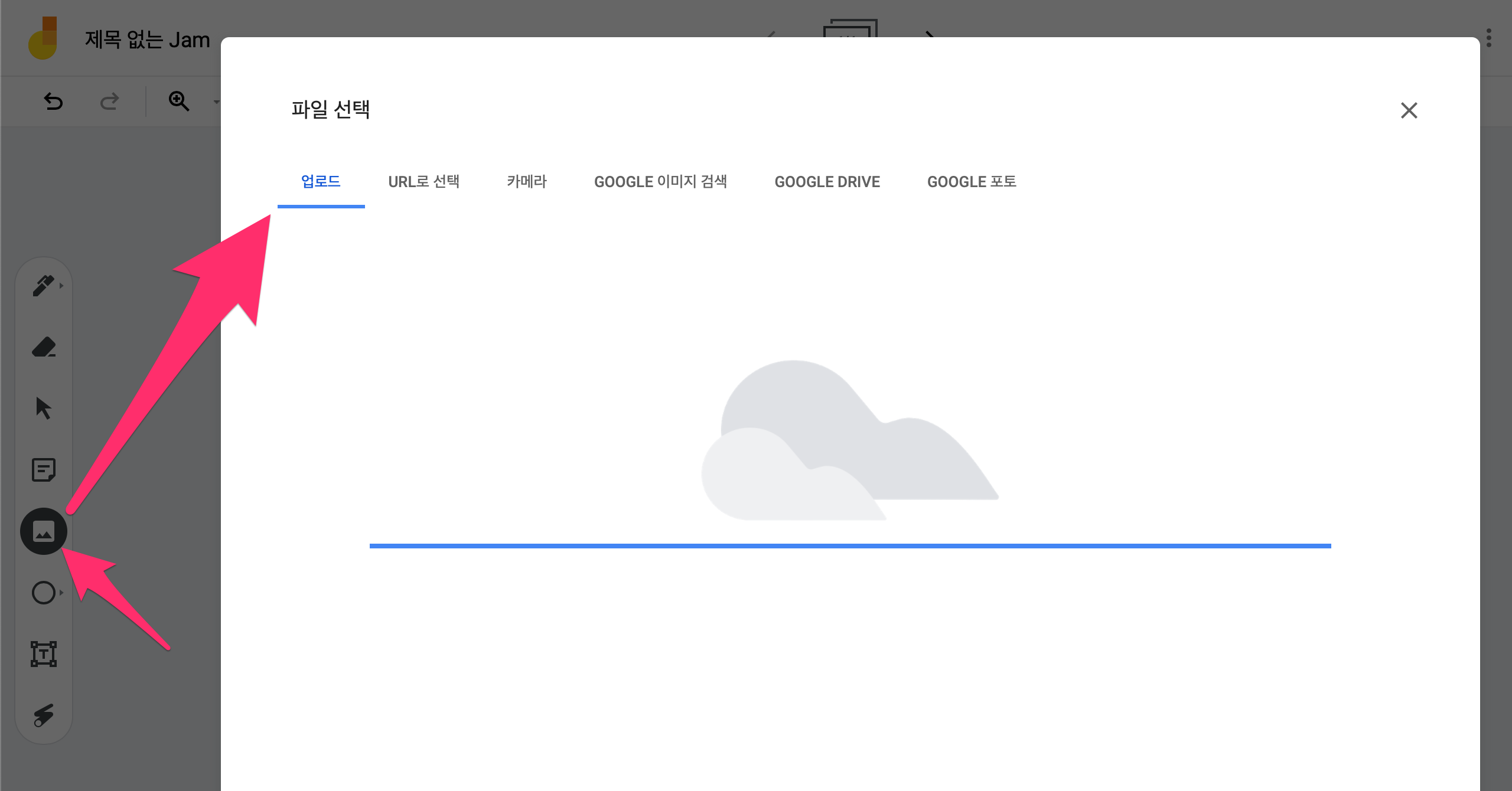 이미지 도구를 선택하고 가지고 있는 이미지를 업로드합니다.