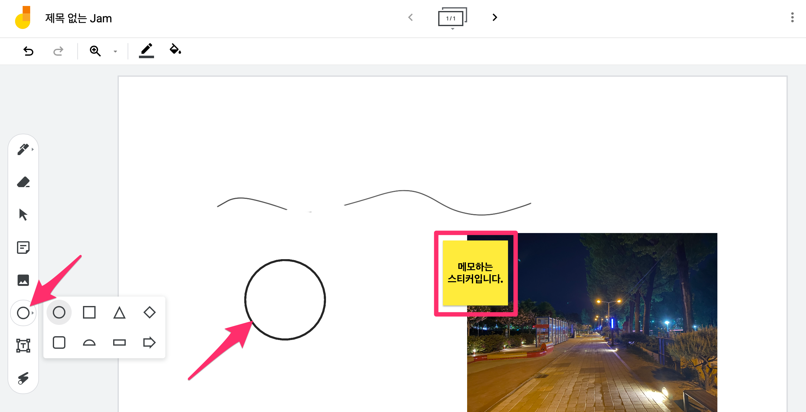 그리고 도형 도구를 선택해서 원하는 도형을 선택하여 보드 위에 생성합니다.