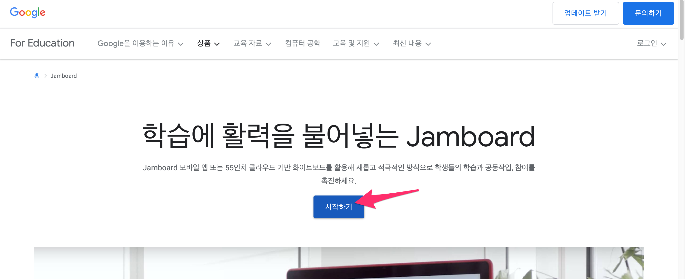 잼보드 홈페이지에 들어오면 시작하기 버튼을 선택합니다.