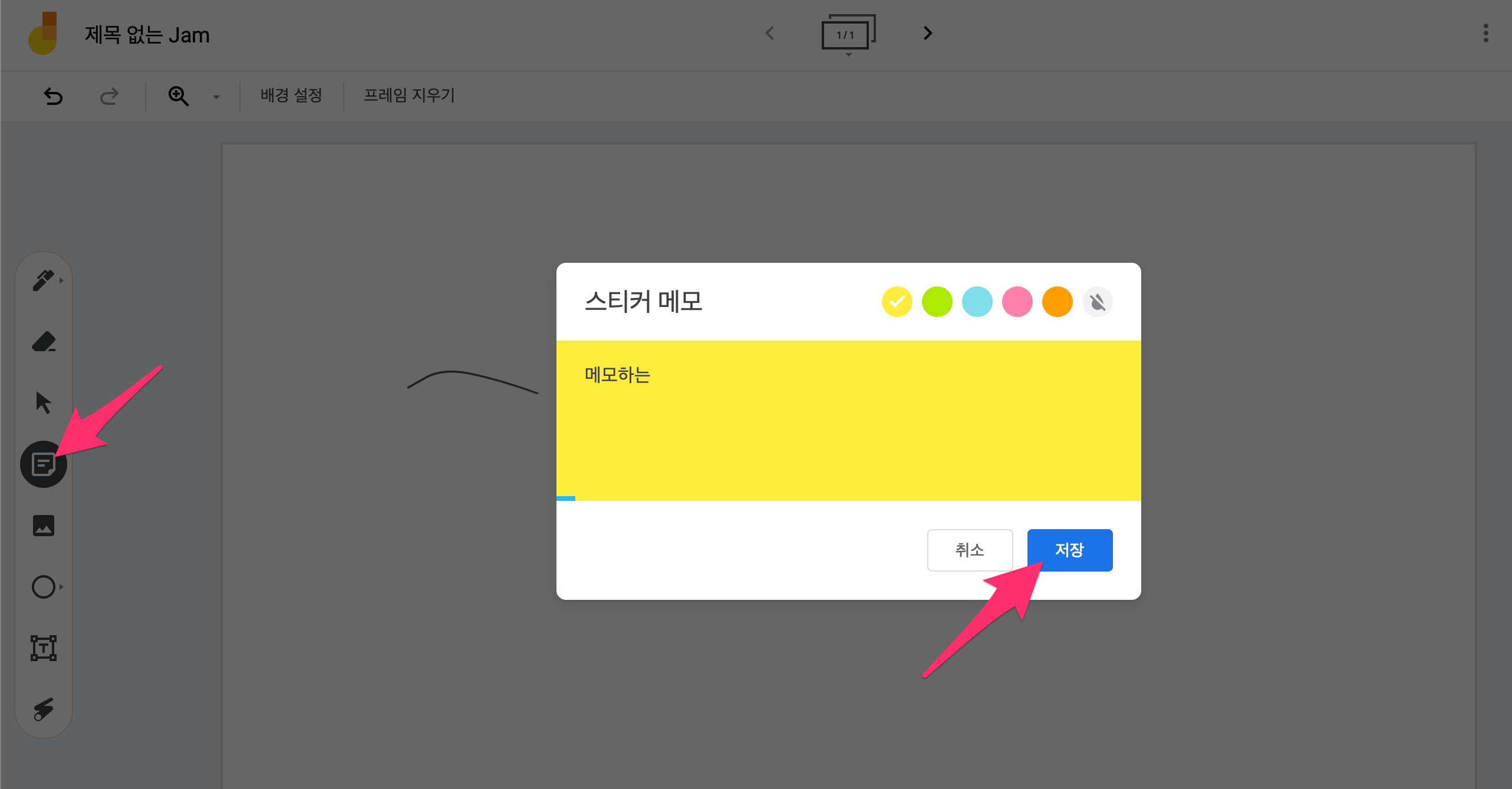 스티커 메모를 선택한 후에 메모하신 후에 저장을 선택하면 포스트잇처럼 메모장이 생성됩니다.