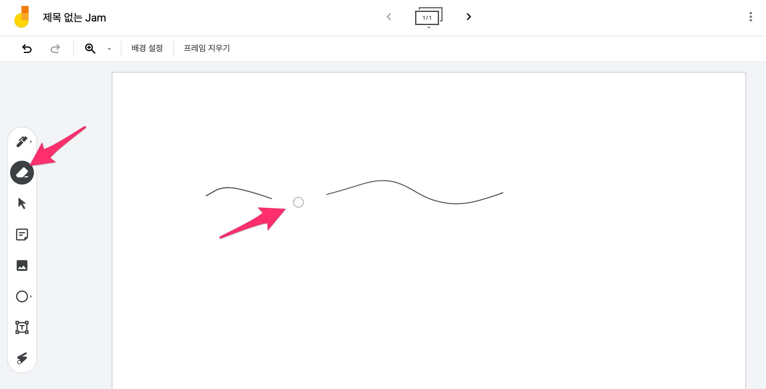 지우개 도구를 선택한 후에 방금 제작한 선을 지울 수 있습니다.