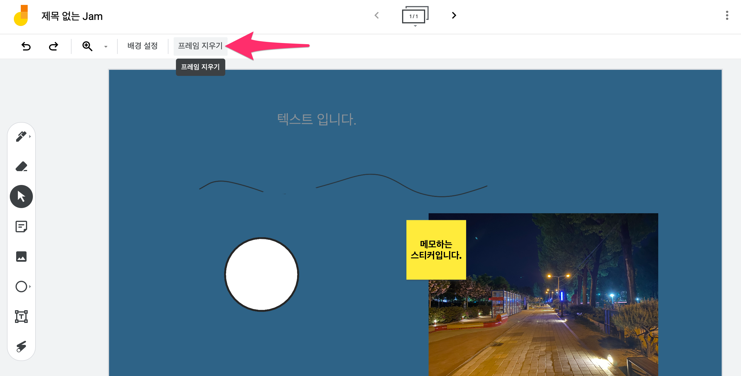프레임 지우기를 선택하면 방금까지 생성한 오브젝트(배경 제외)가 모두 지워집니다.