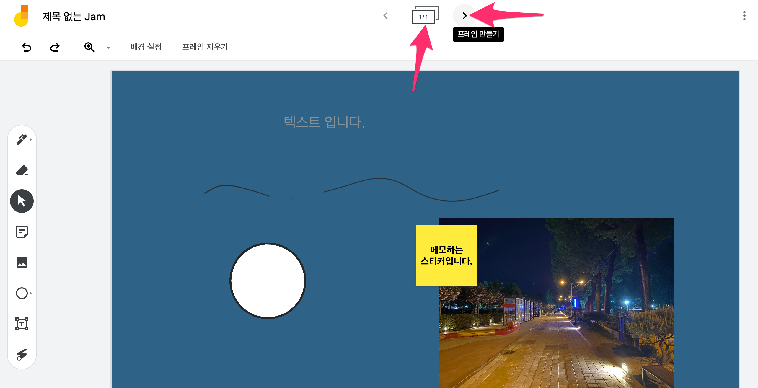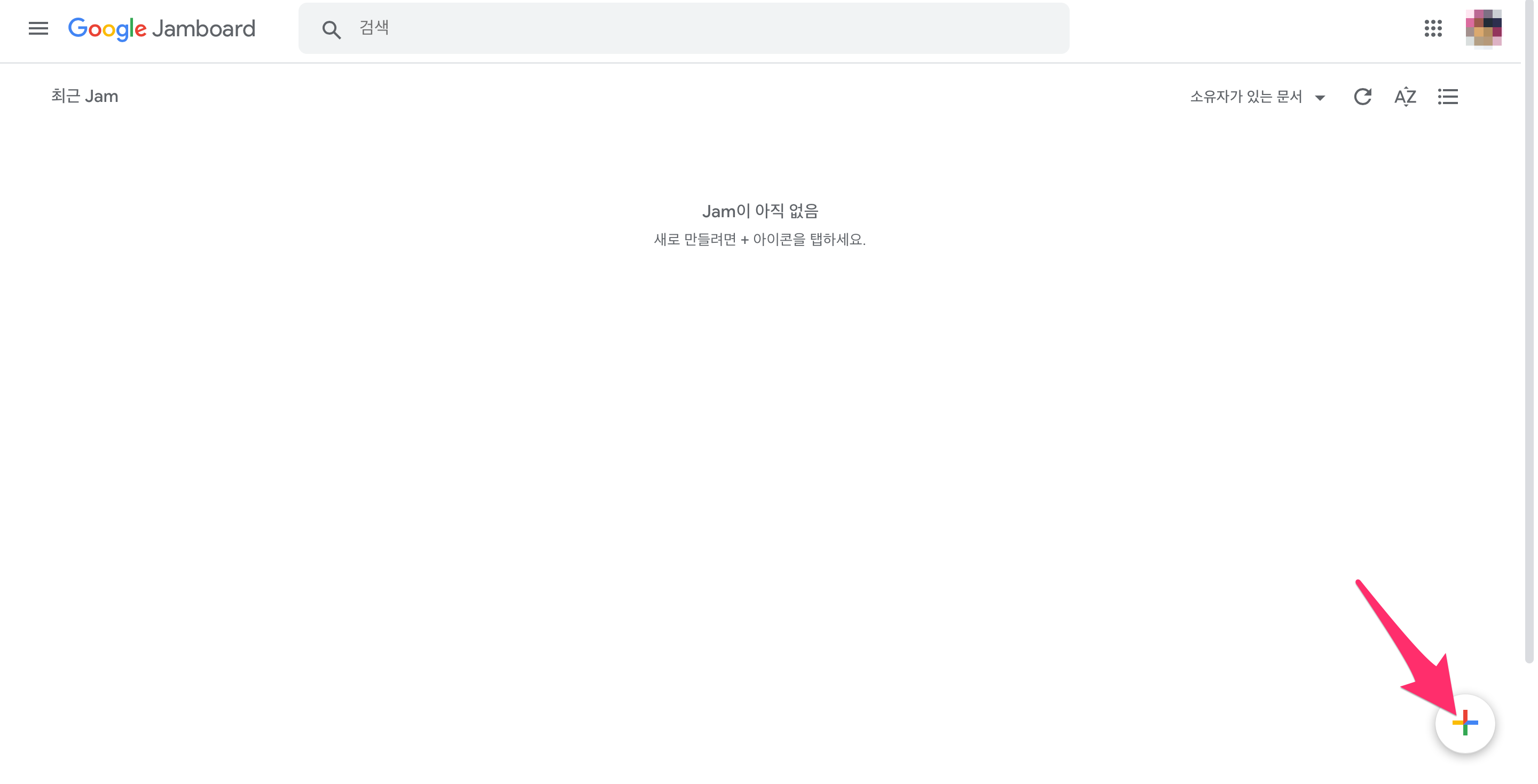 잼보드 화면에서 오른쪽 하단에 + 버튼을 선택합니다.