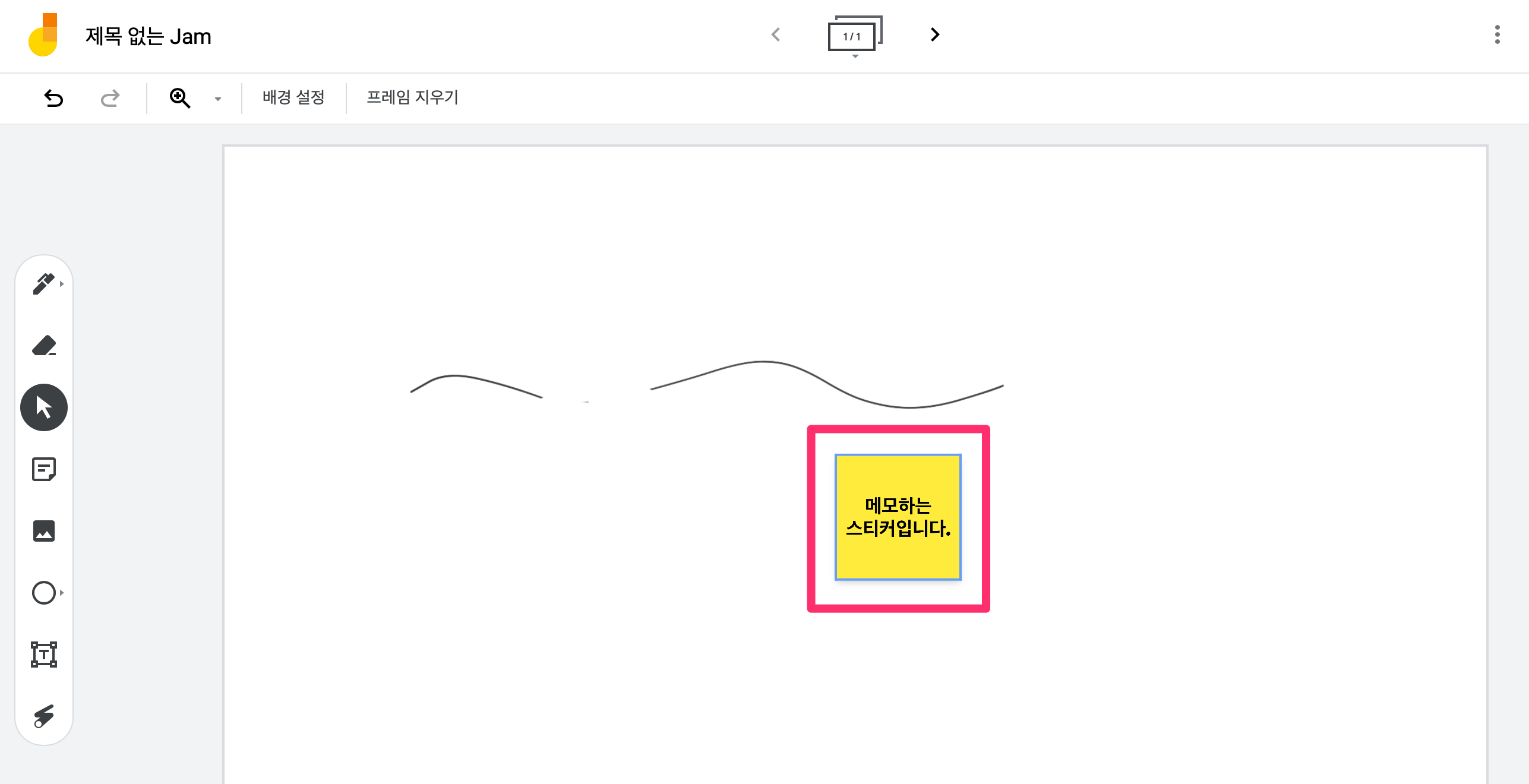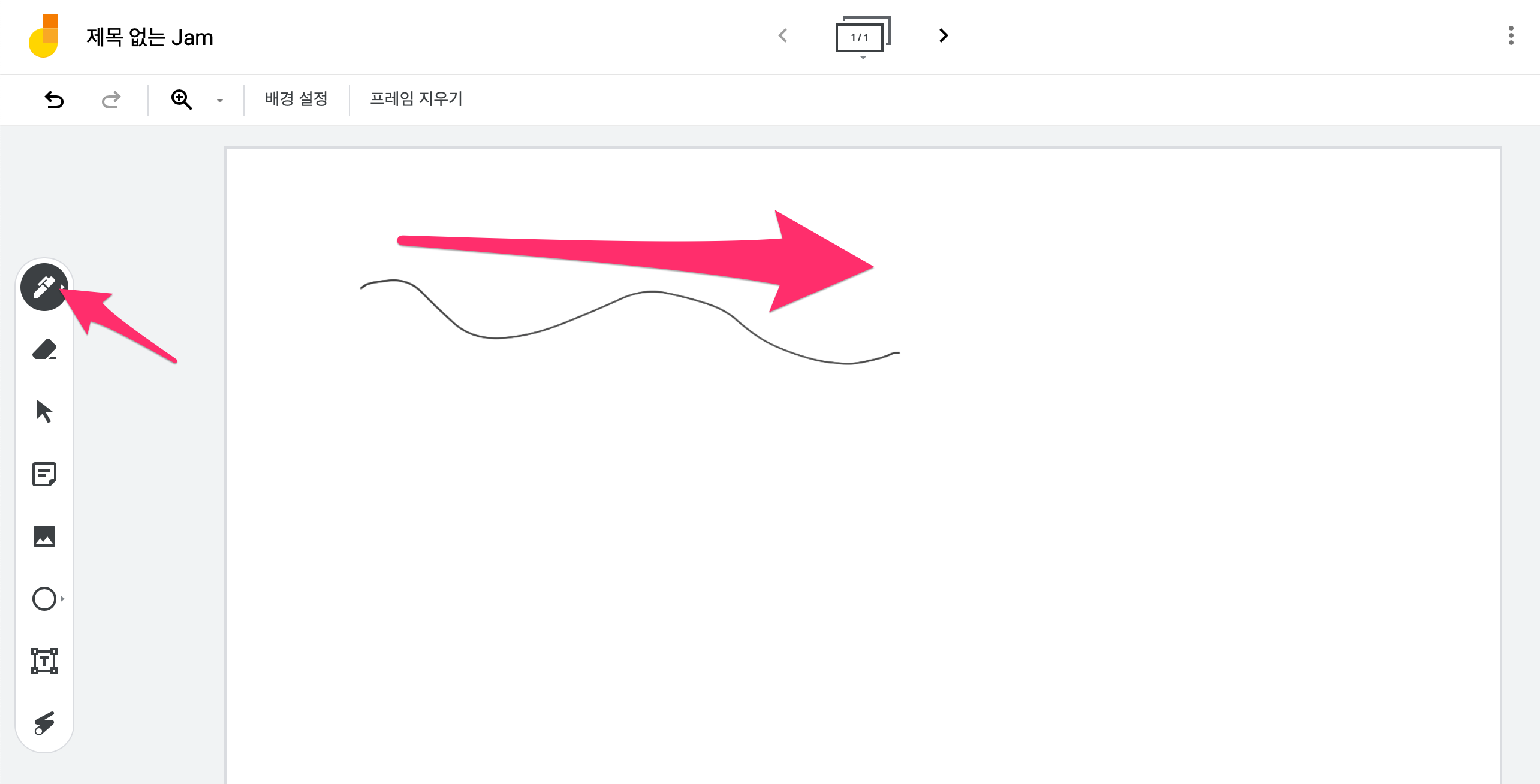 그중에서 맨 위에 있는 펜 도구를 선택하고 보드에 선 긋기를 해보시길 바랍니다.