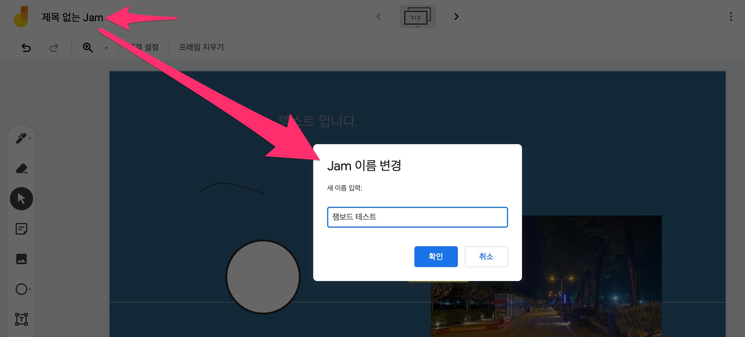 왼쪽 상단에 이름을 선택하여 이름을 변경할 수 있습니다.