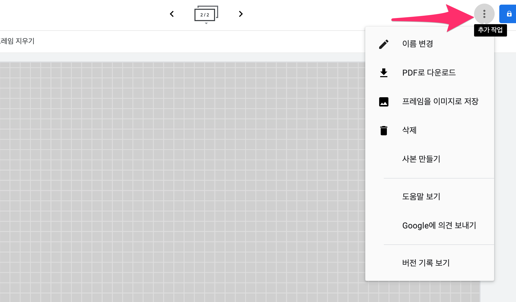 상단 오른쪽 추가 작업을 선택하면 다양한 메뉴를 확인할 수 있습니다.