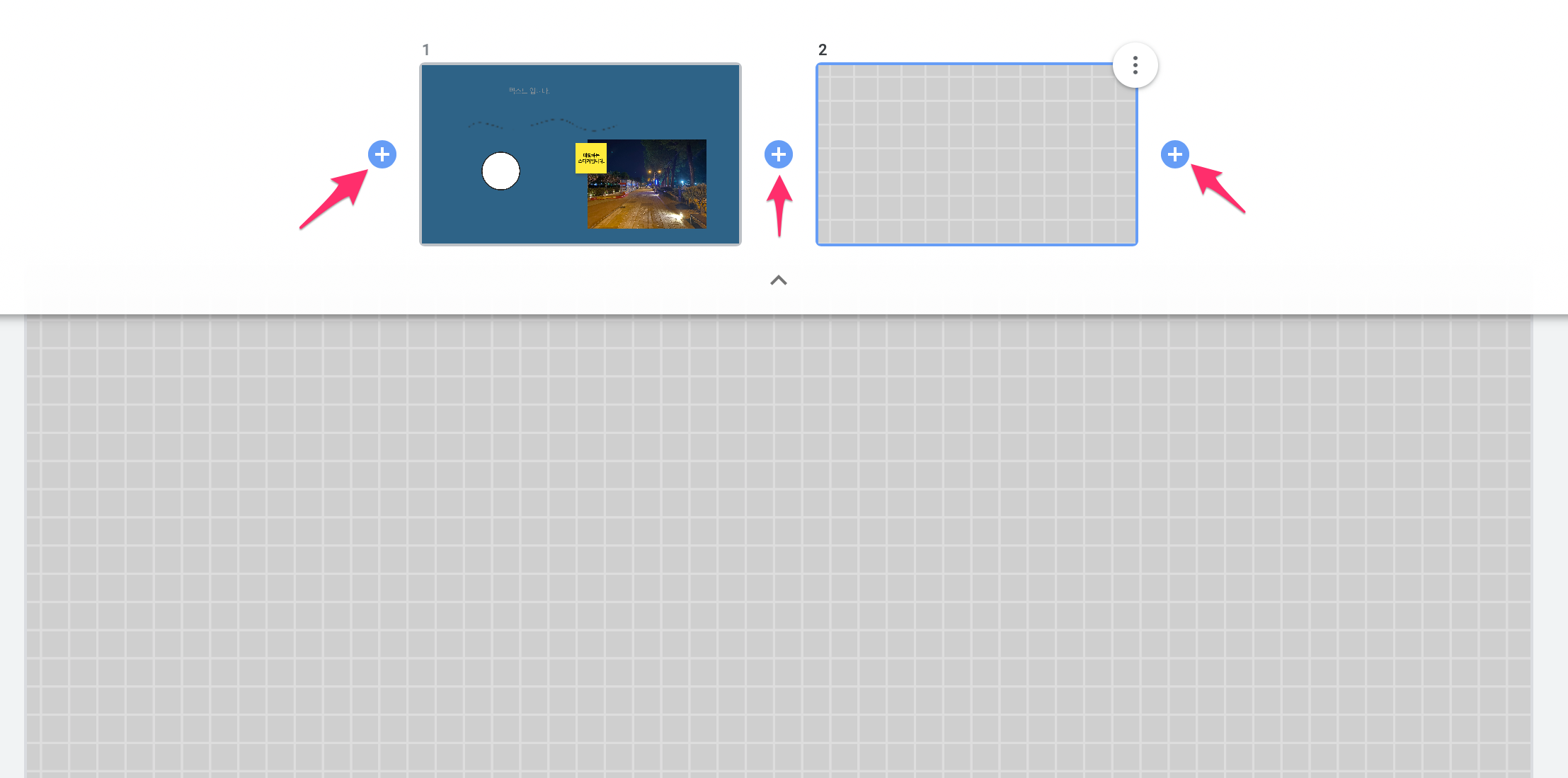 프레임 바 펼치기를 보시면 각 프레임의 순서를 미리 보기가 가능하고 중간에 있는 + 버튼을 선택하면 프레임이 그 자리에 추가됩니다.