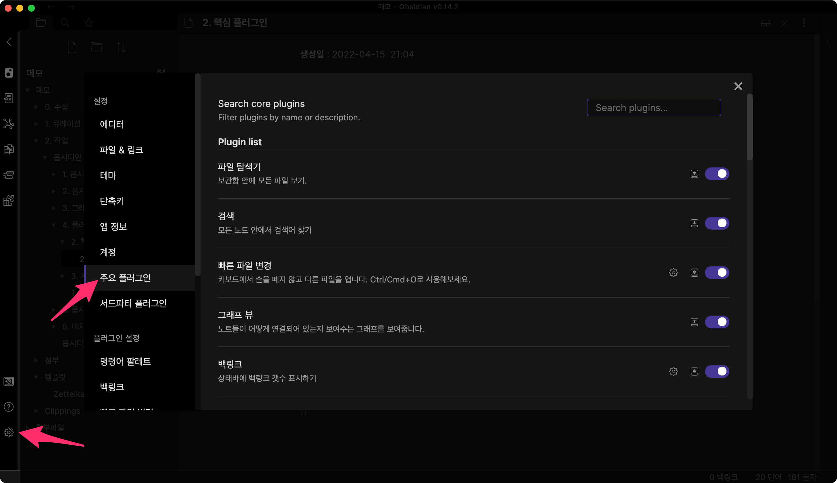 옵시디안에는 2가지 종류의 플러그인이 있습니다.