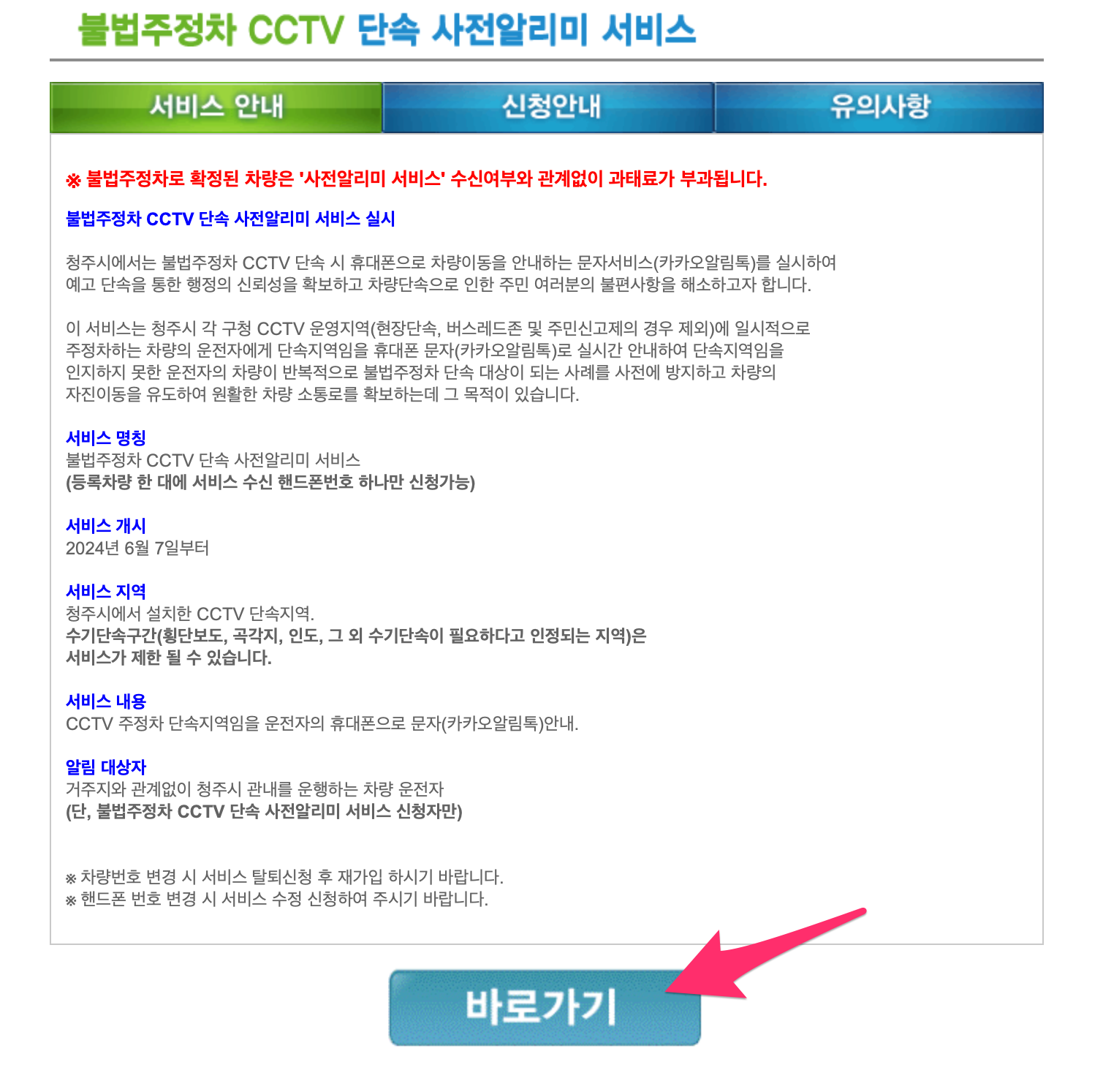 청주시에서는 불법 주정차 단속 사전 알림 서비스를 개시합니다.
