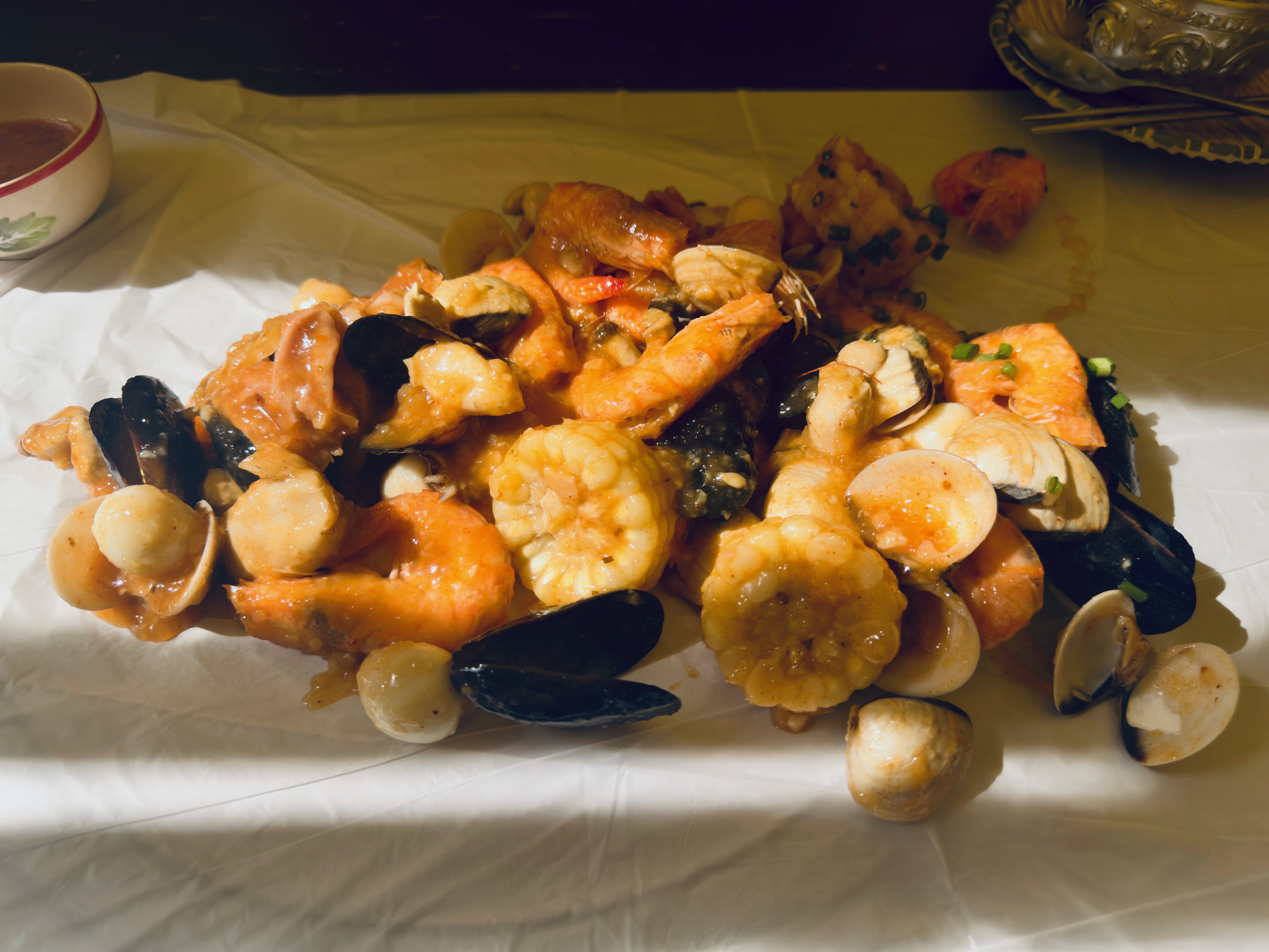 새우, 오징어, 홍합, 조개, 가리비, 소시지, 옥수수 등 다양한 재료가 어우러져, 풍부한 맛과 깊은 풍미를 제공합니다.