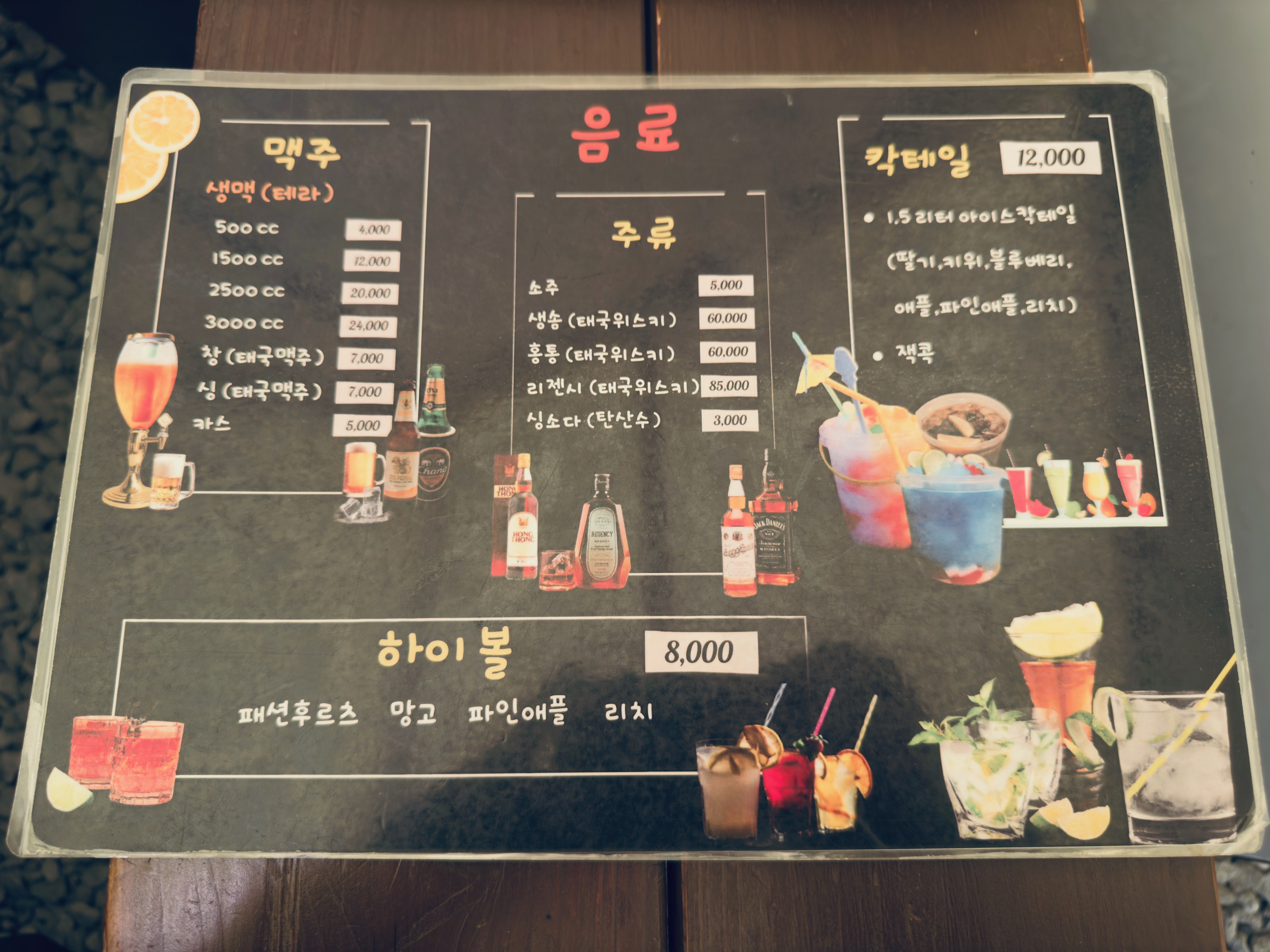개인적으로 느끼는 가격대는 메뉴판을 보시면 보통 태국음식점 정도로 형성되고 있습니다.