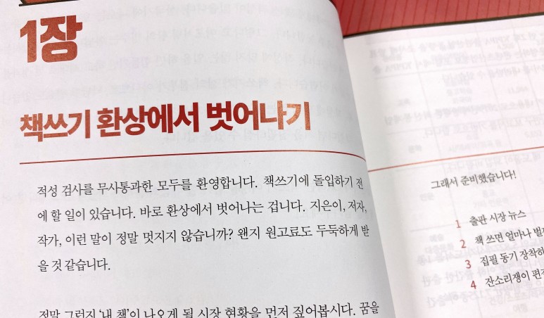 목차를 보면 책쓰기 생각부터 출판까지 이르는 자세한 프로세스를 친절하게 설명해 주고 있다.