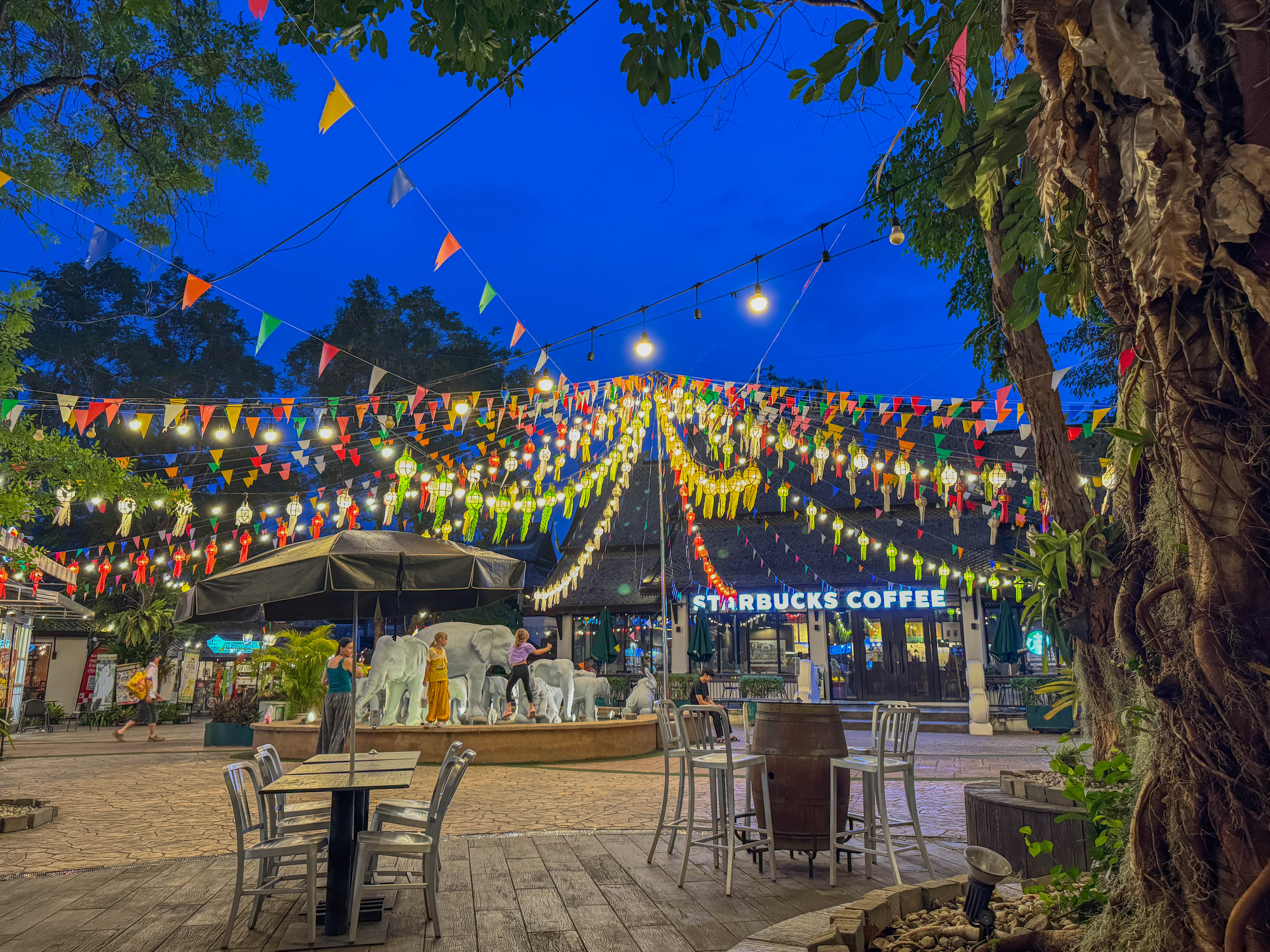 작은 광장에 들어서니 예쁜 전등들이 반짝반짝, 그리고 가운데 자리 잡은 작은 코끼리 분수대가 있습니다.