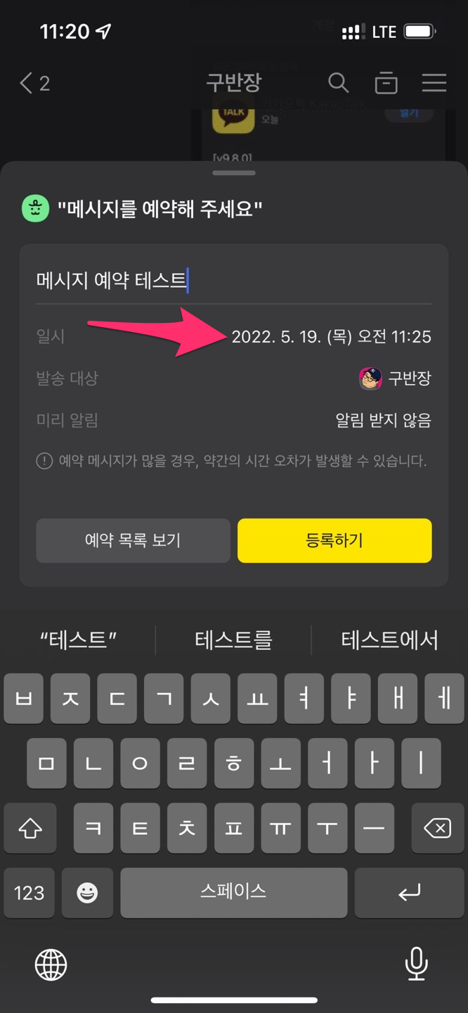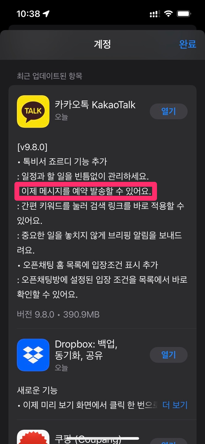 안드로이드폰에서는 가능하다고 하지만 아이폰이라서 포기하다가 정식으로 카톡을 예약 발송이 가능하다는 소식을 듣고 바로 업데이트했습니다.