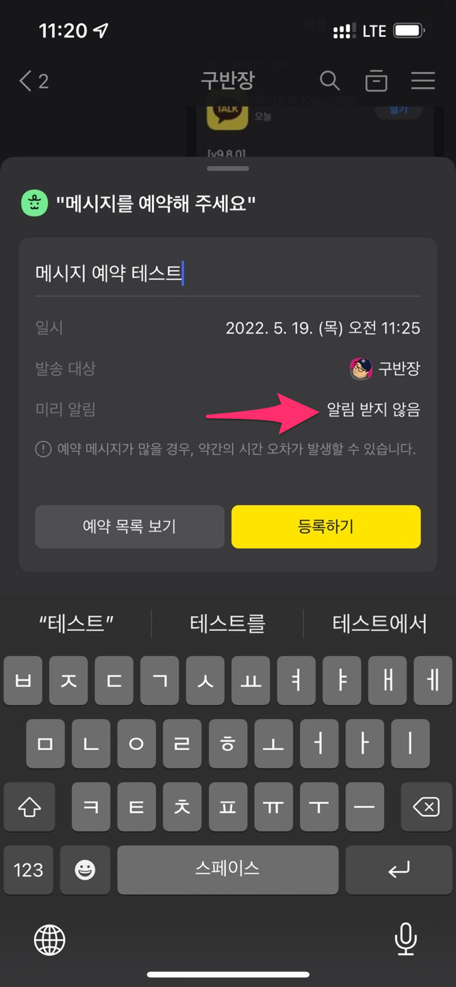 그중에 하나가 예약 메시지가 안 되는 것이었습니다.