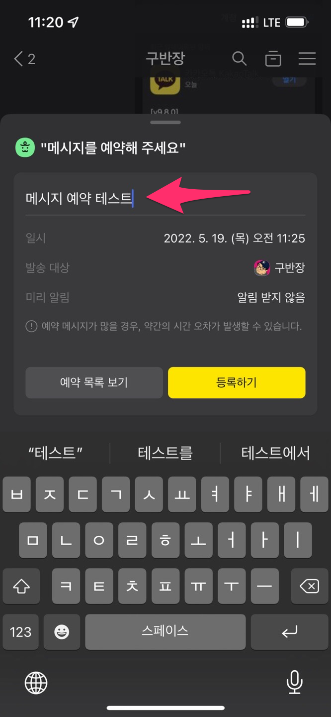 안드로이드폰에서는 가능하다고 하지만 아이폰이라서 포기하다가 정식으로 카톡을 예약 발송이 가능하다는 소식을 듣고 바로 업데이트했습니다.