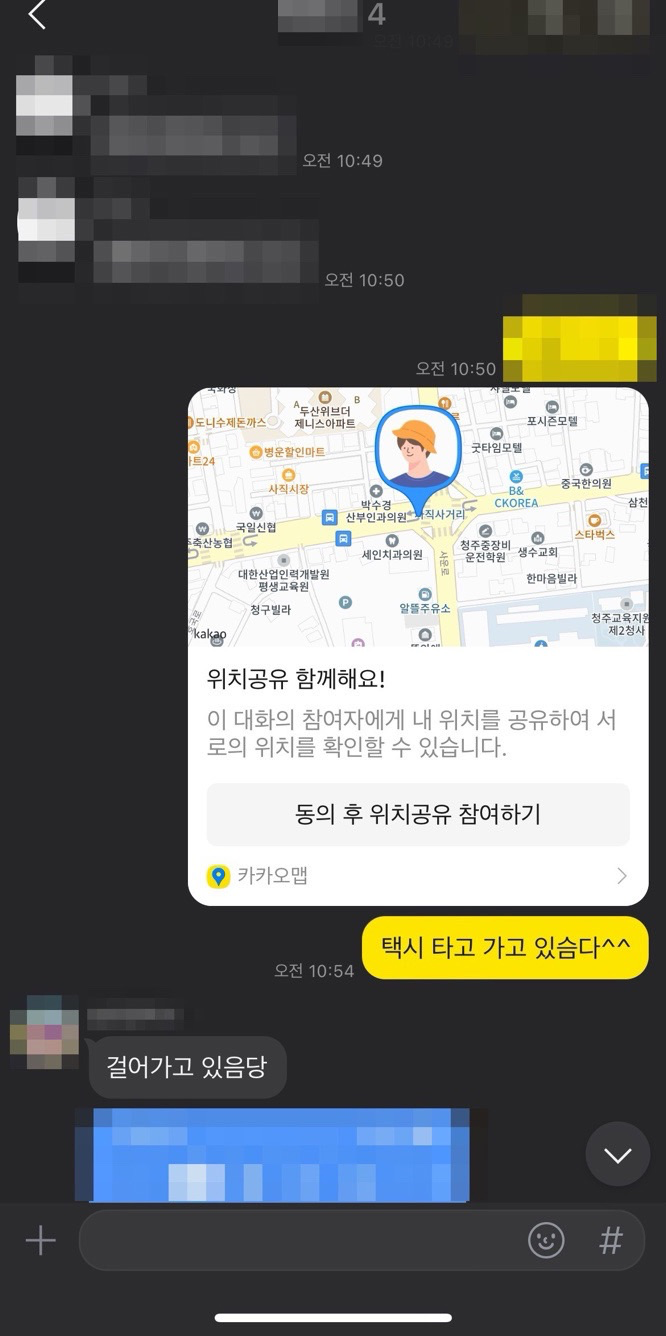 택시를 타고 가던 중에 카카오맵에 보니 위치공유 메뉴가 있더군요^^